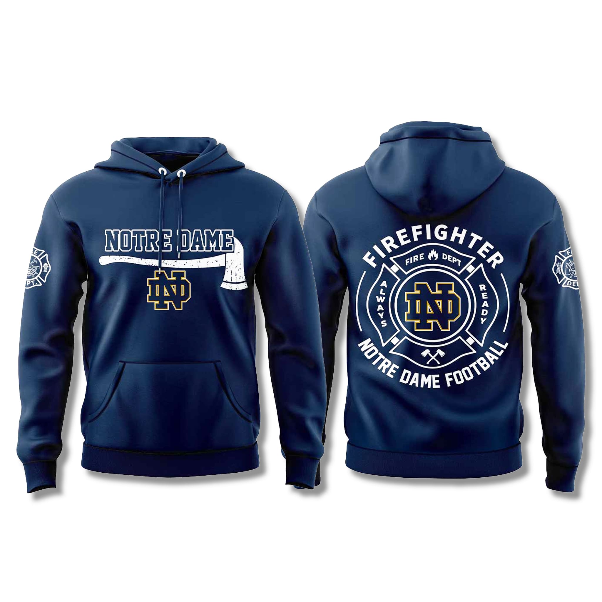 The Notre Dame Football Firefighter Appreciation Day Hoodie 2025 is an iconic fashion piece that forges a deep connection between the legendary football tradition of the University of Notre Dame and the noble sacrifices of firefighters. Subtly integrated with the motto “Always Ready,” this hoodie honors the fearless spirit of firefighters – those who face danger head-on to protect their communities – much like Notre Dame players who fight relentlessly on the field.