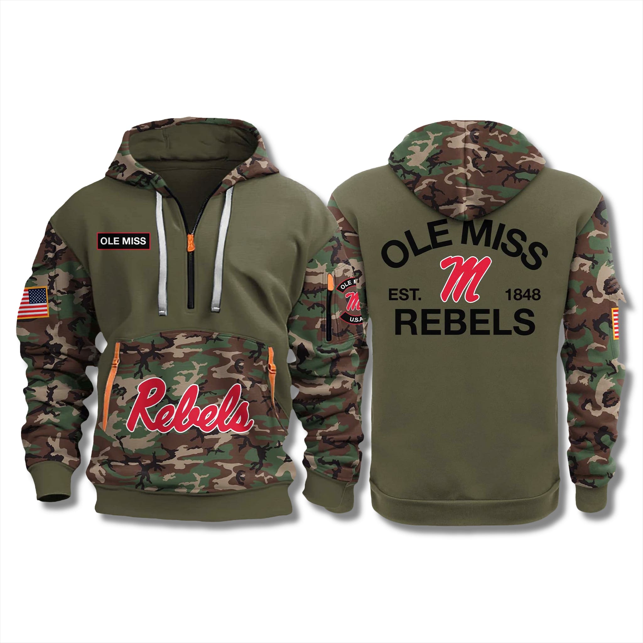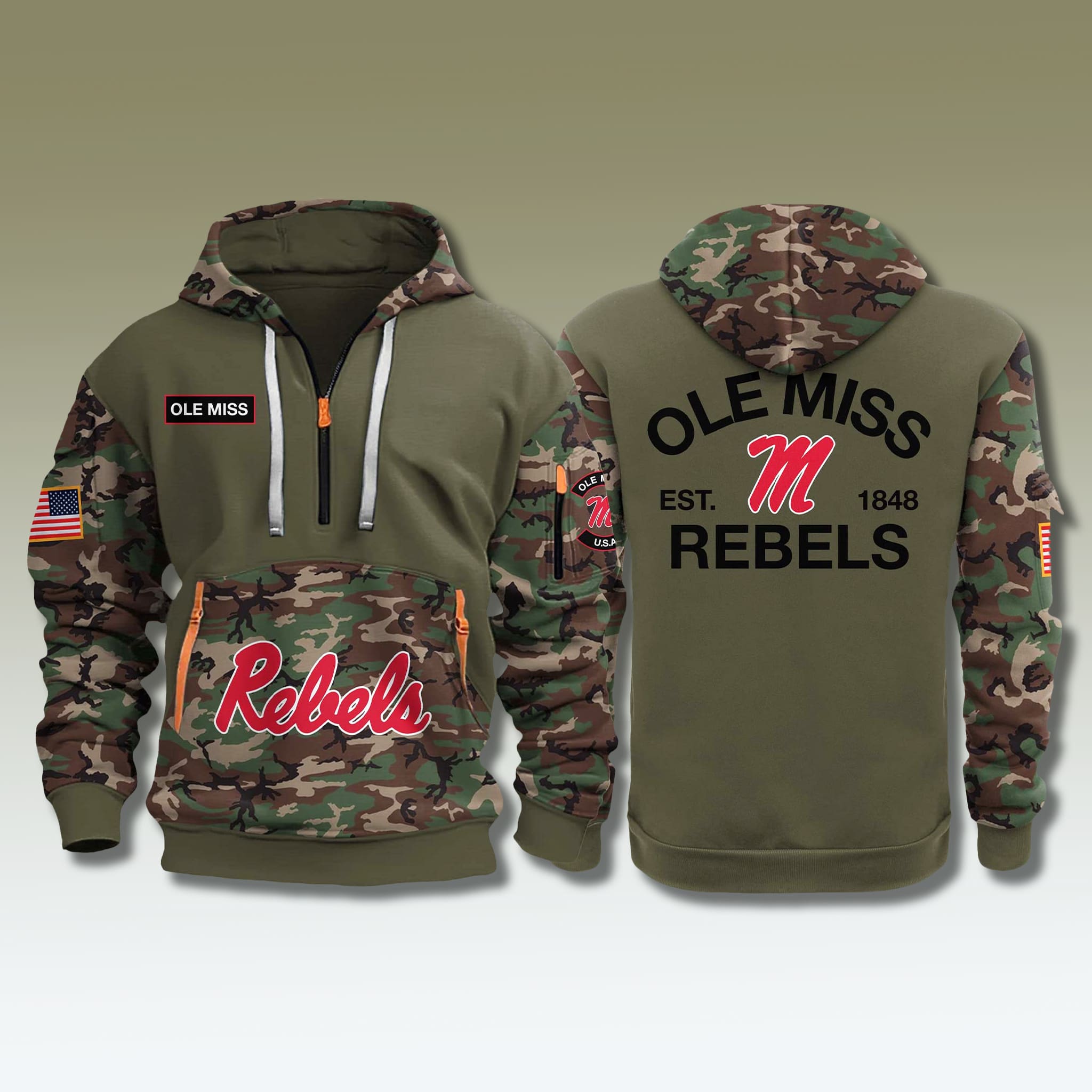 Ole Miss Rebels Military Camo Quarter Zip Hoodie 2025 – Rebel Spirit of Mississippi