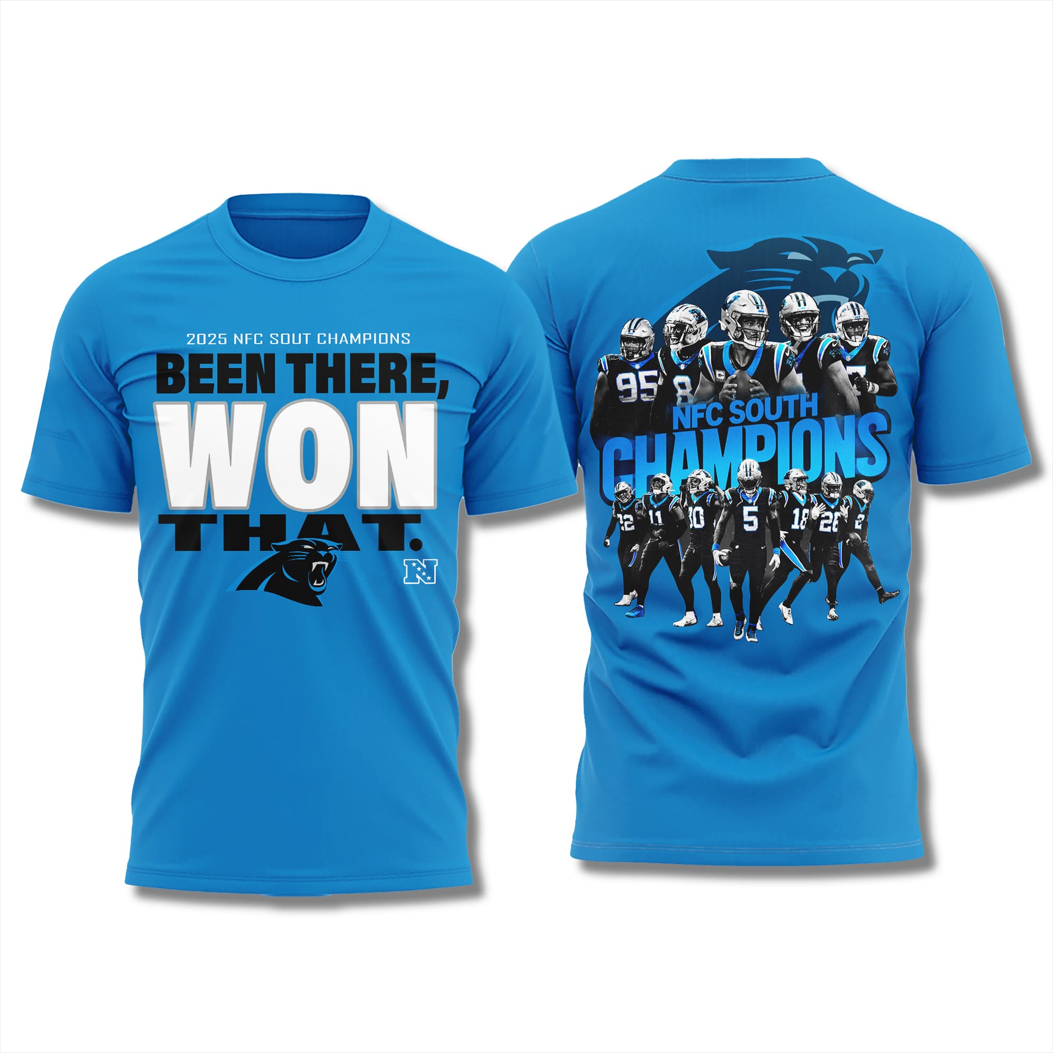 The message on the front – “BEEN THERE, WON THAT.” – is a bold declaration: We were there, we fought, and we won. It erases all doubts about the team’s ability and affirms the Panthers’ No.1 position in the NFC South this year.