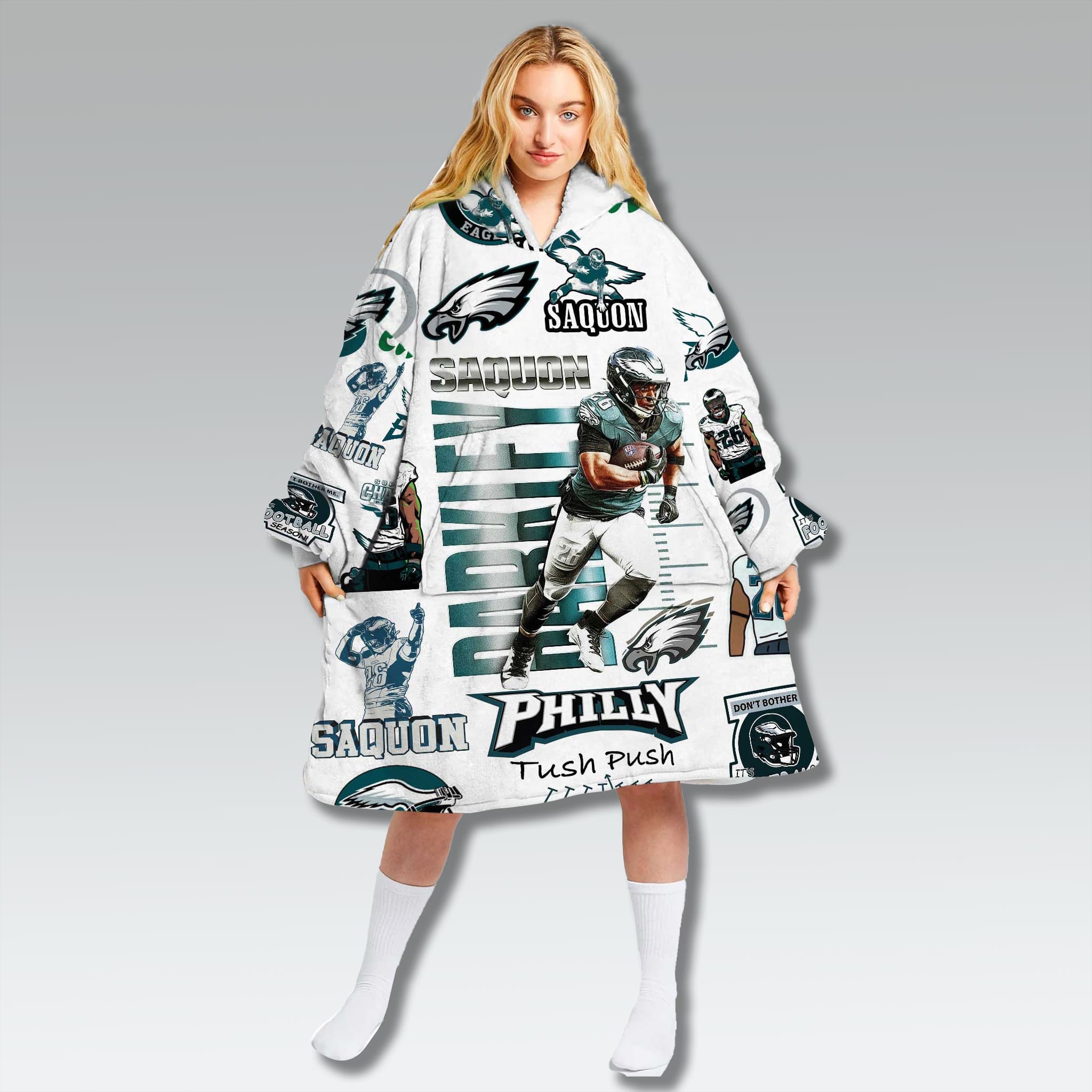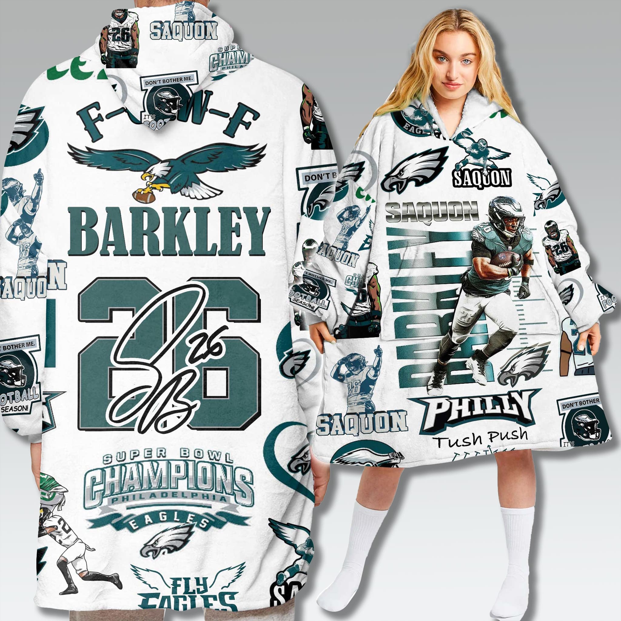 Wrap yourself in history and undying pride! The Eagles Saquon Barkley Champions Vintage Blanket Hoodie is a creation for true Eagles fans, connecting the present with a glorious past. This special vintage design not only honors the team’s new star running back, Saquon Barkley, but also recalls the legendary championship victories of the Eagles.