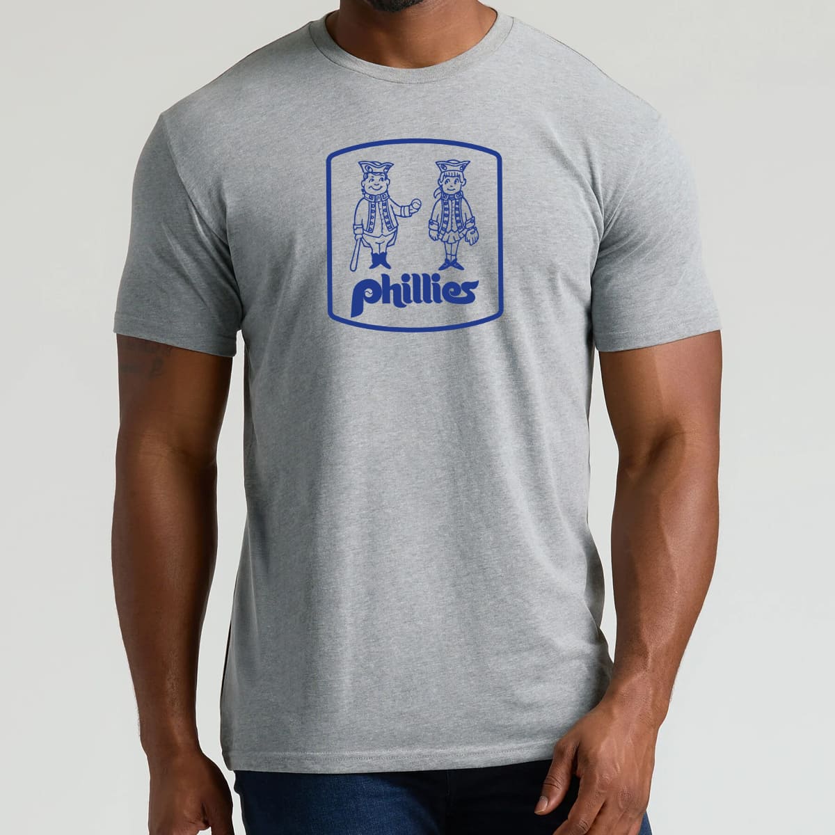 Phillies Opening Night T-Shirt Giveaway 2026 is the featured giveaway for the game against the Texas Rangers (the second game of Opening Weekend). This design brings an exciting atmosphere to welcome the new season with traditional Phillies spirit, highlighted by the historic mascot duo from the franchise’s early years, representing joy, nostalgia, and Philadelphia pride.
