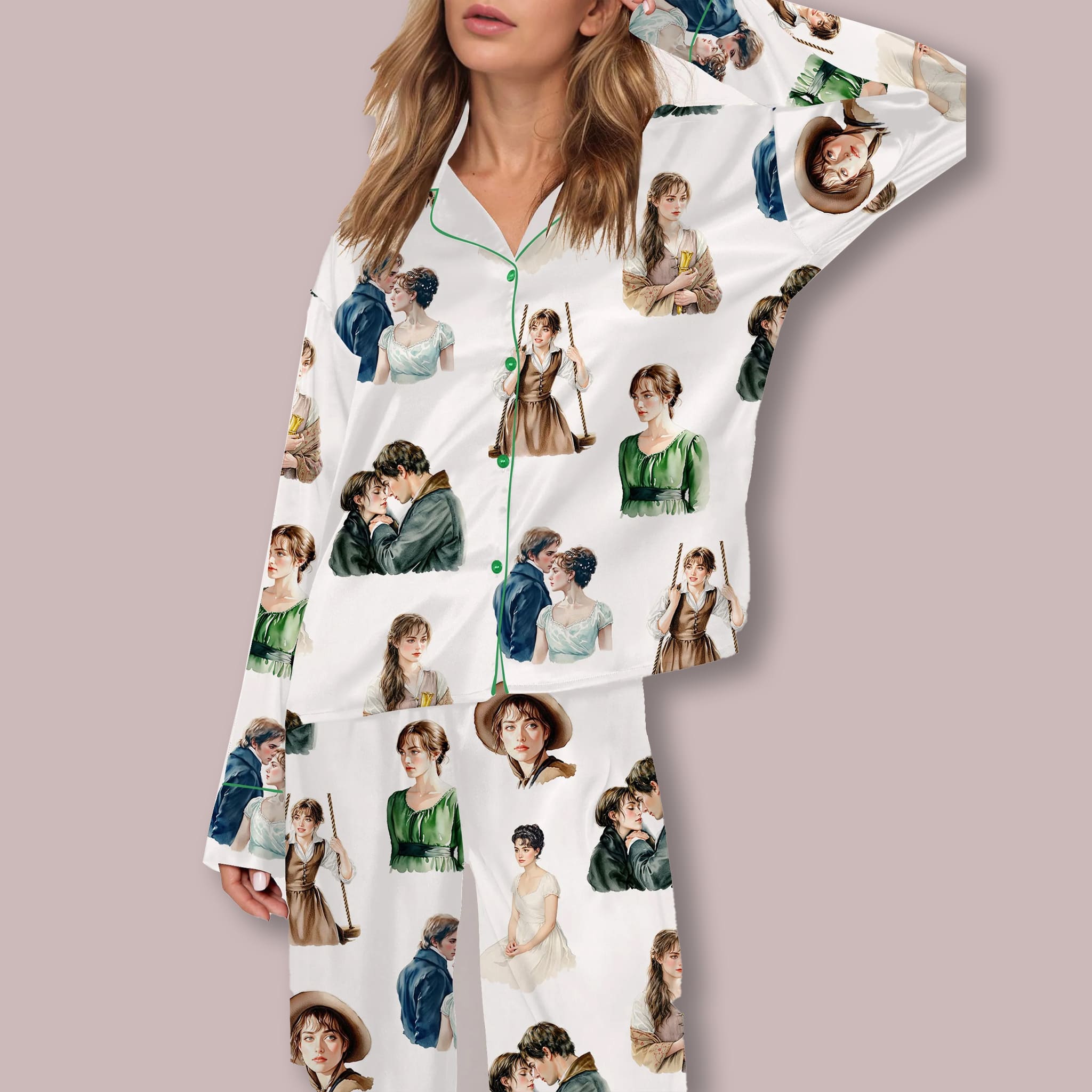 Pride And Prejudice Silky Satin Pajama Set | Romantic Literary Sleepwear for Book Lovers