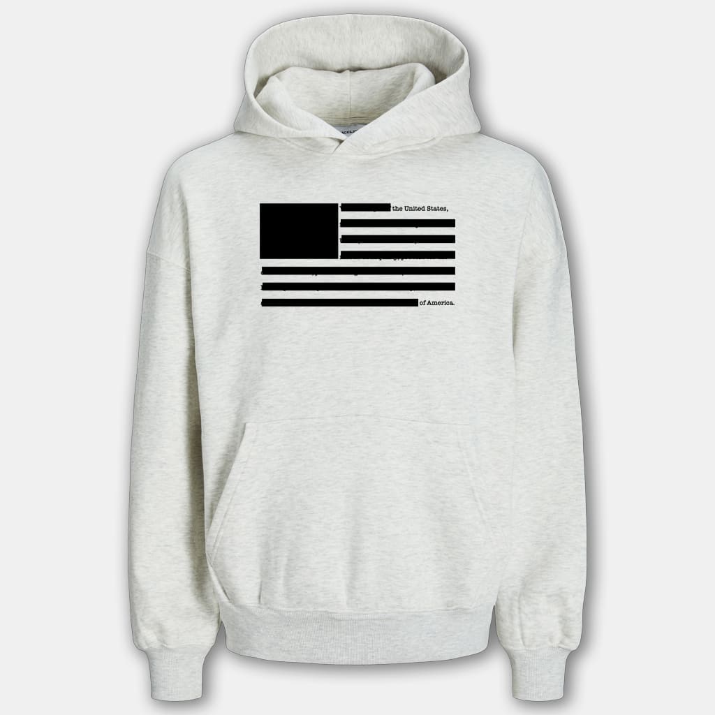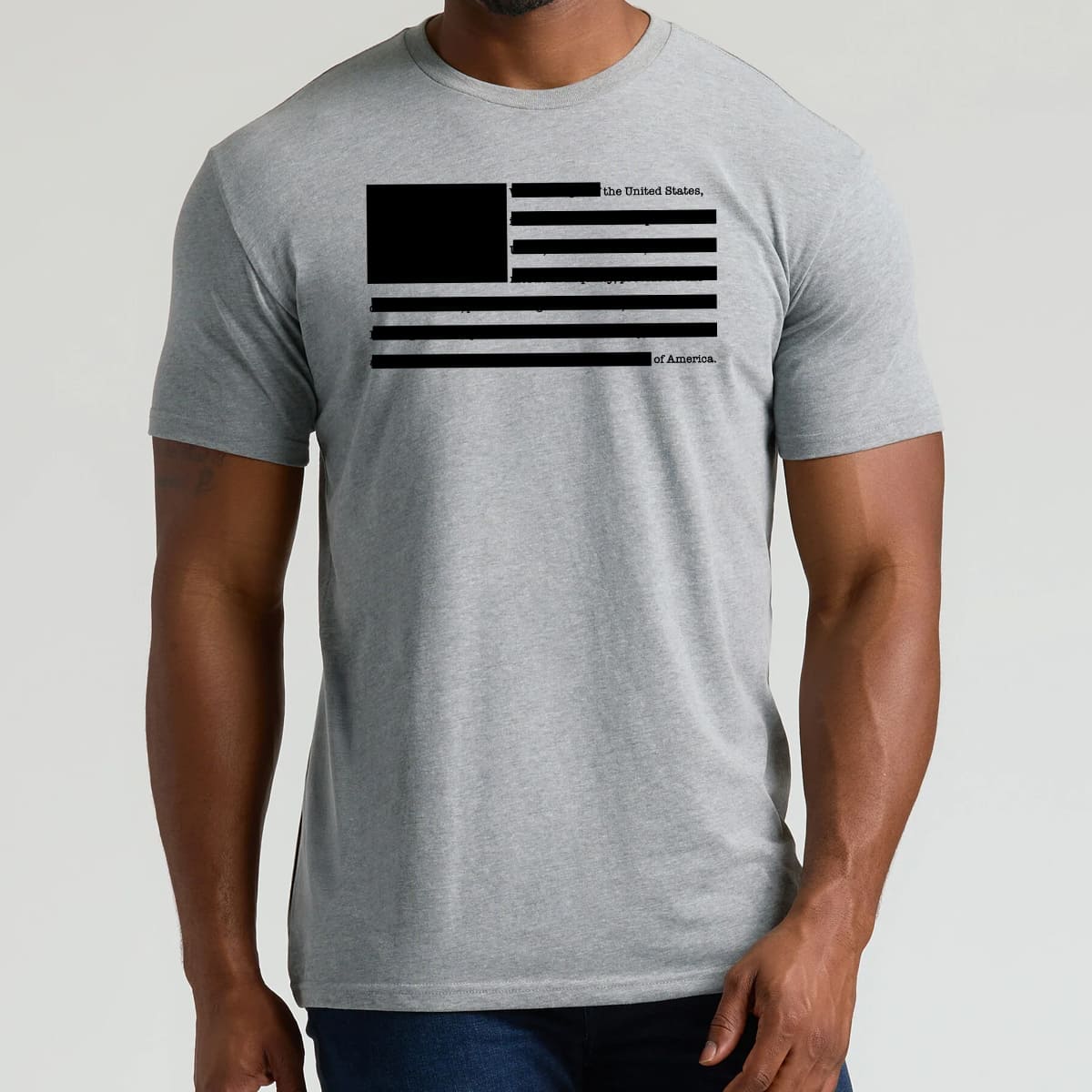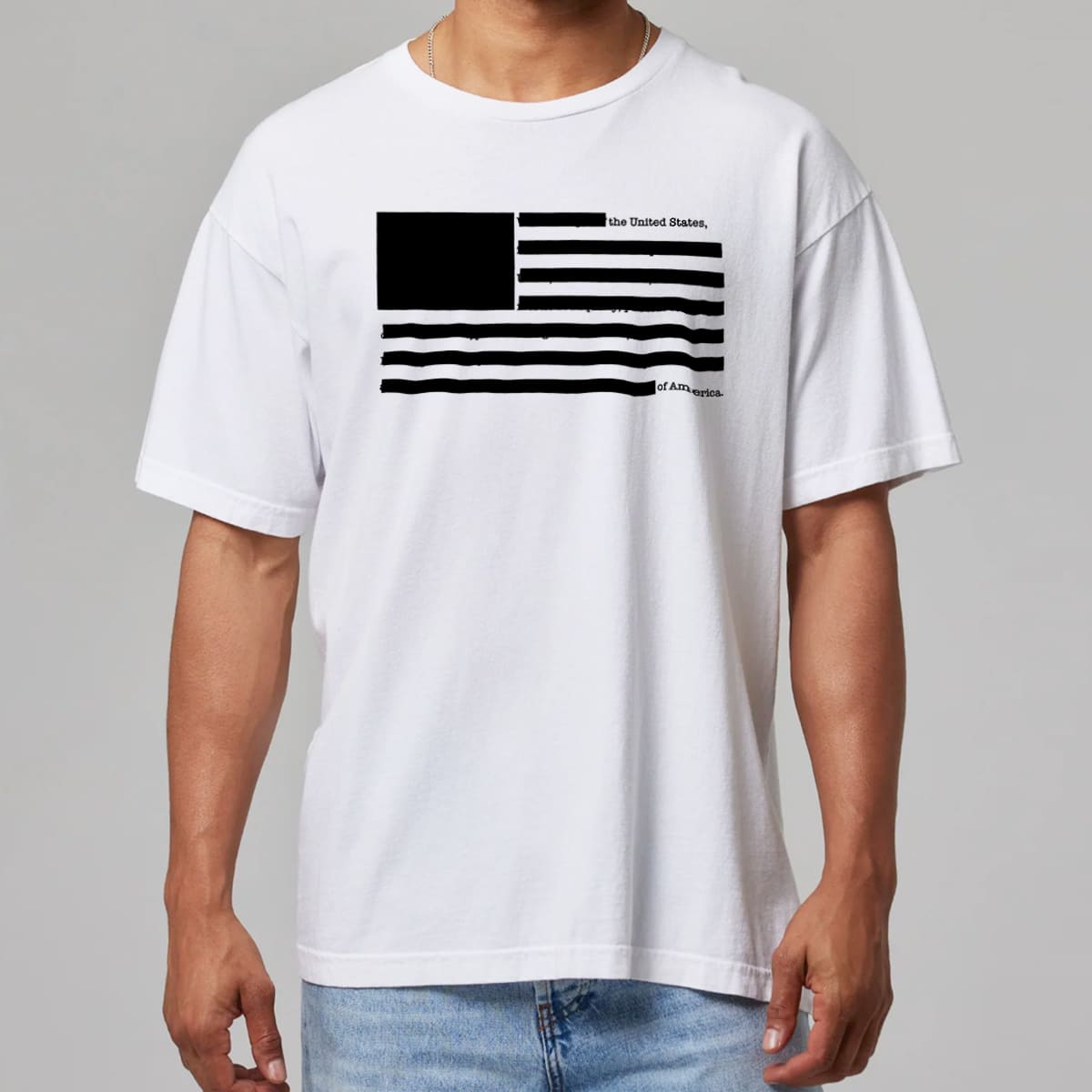 The design is minimalist on a classic white background, easy to style. The redacted black U.S. flag graphic stands out, with a strong satirical and trollish style. Buy now to show your interest in political issues, with multiple colors and sizes available at iFrogtees!