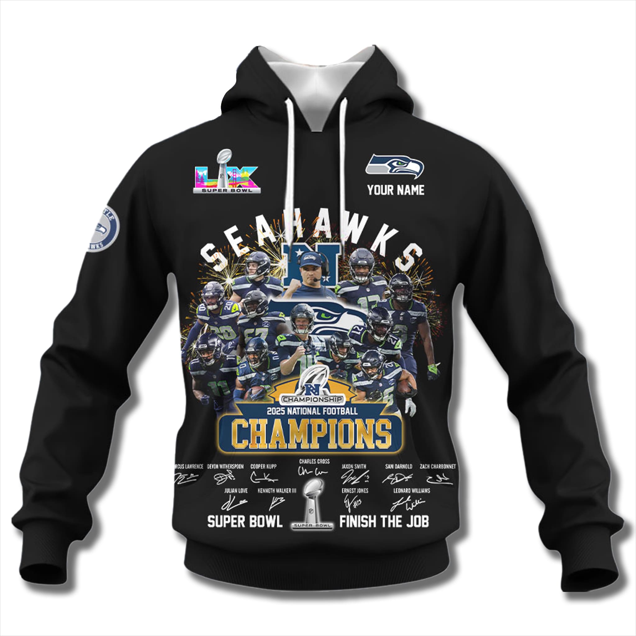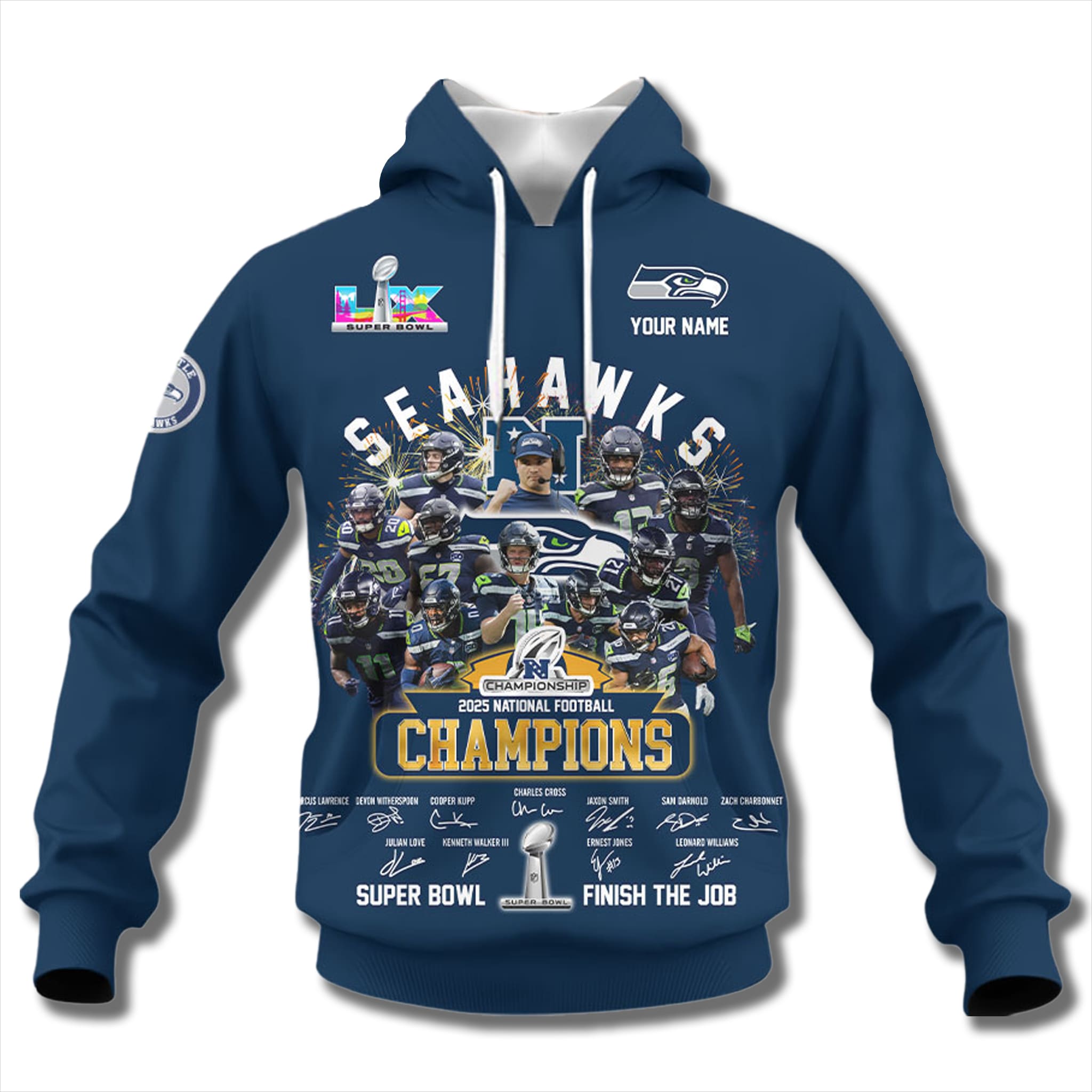 Don’t just be a spectator – become part of the team with the Seahawks 2025 NFC Championship All Team Roster Custom Hoodie. Put your name on the jersey, wear your pride, and get ready to “Finish The Job” with the Seahawks in the upcoming championship game. Order now to secure this limited-edition piece!