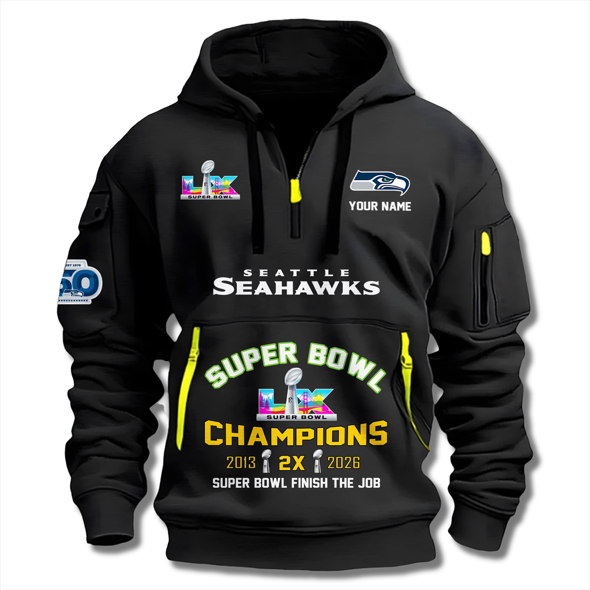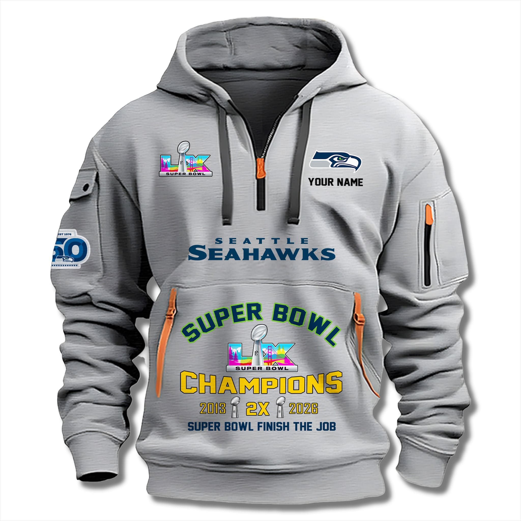 Seahawks 2025 Super Bowl Champions Quarter Zip Hoodie – Dynamic and Warm, Made for 12s