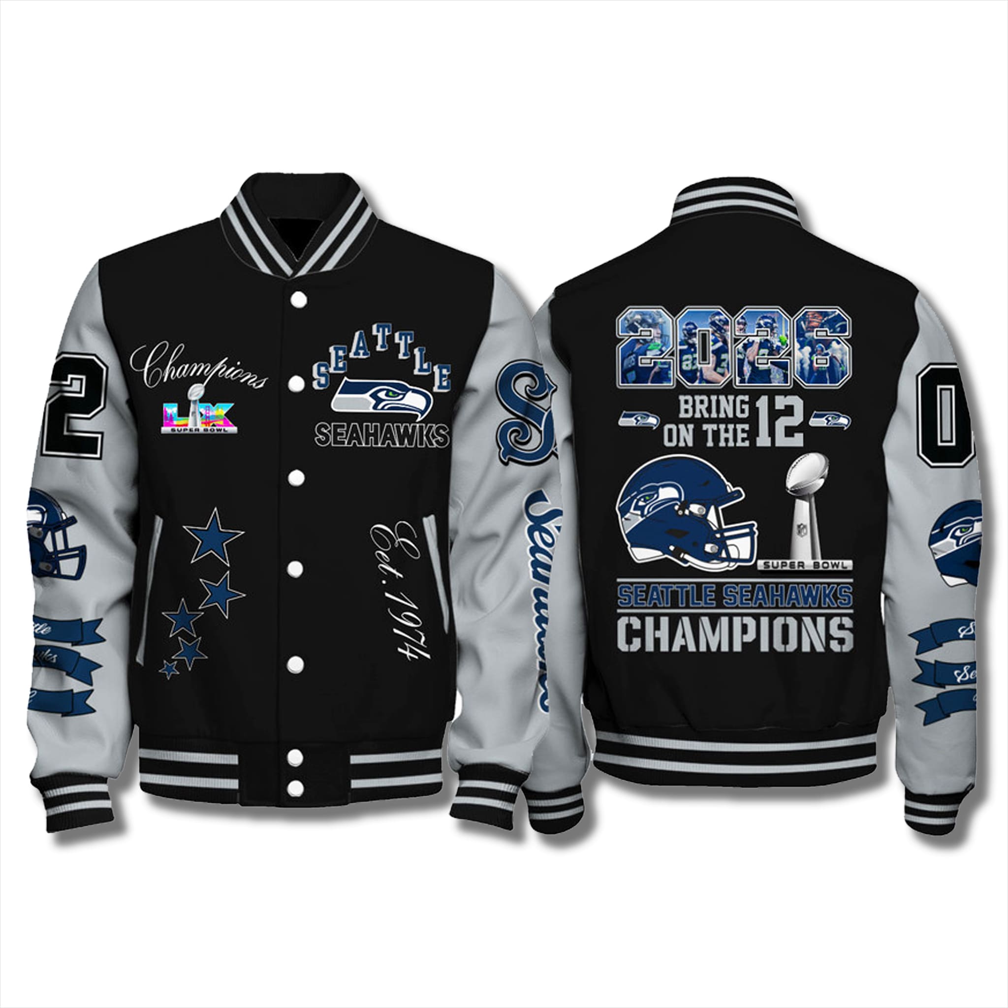 Put on the Seahawks Super Bowl Bring On The 12 Jacket and help spread the championship spirit with the Seattle fan community wherever you go. This is not just a jacket – it’s a statement of loyalty and unwavering love for the Seattle team in the historic 2026 season. Own it now and be part of the glory!