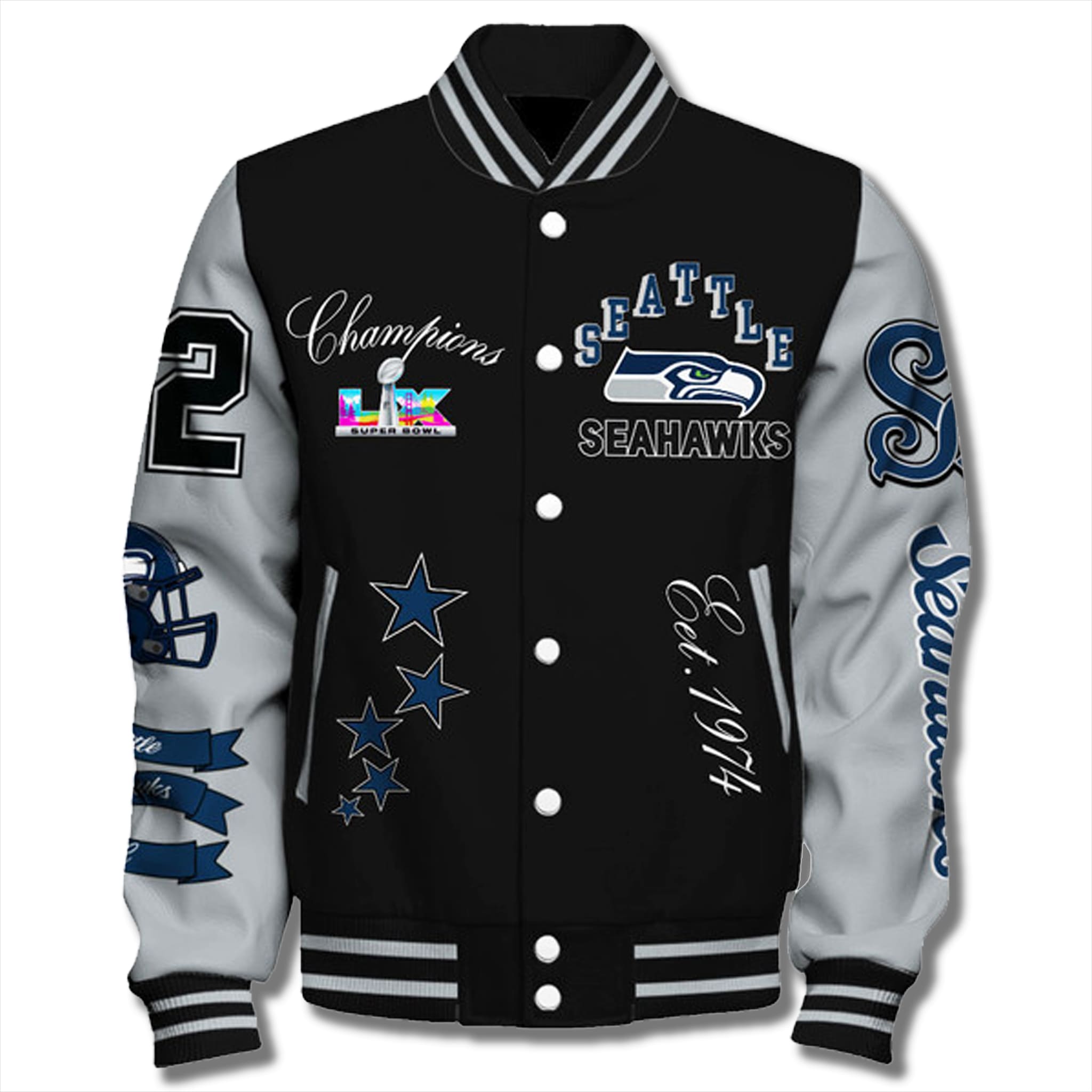 The glorious victory at Super Bowl LX was not only the result of the warriors on the field, but also the product of the relentless support from “The 12th Man.” The Seahawks Super Bowl Champions Bring On The 12 Jacket was created as a special tribute to one of the most passionate fan communities in the world. Featuring the proud message “Bring On The 12,” this jacket marks a new glorious chapter in the team’s history since its founding in 1974.
