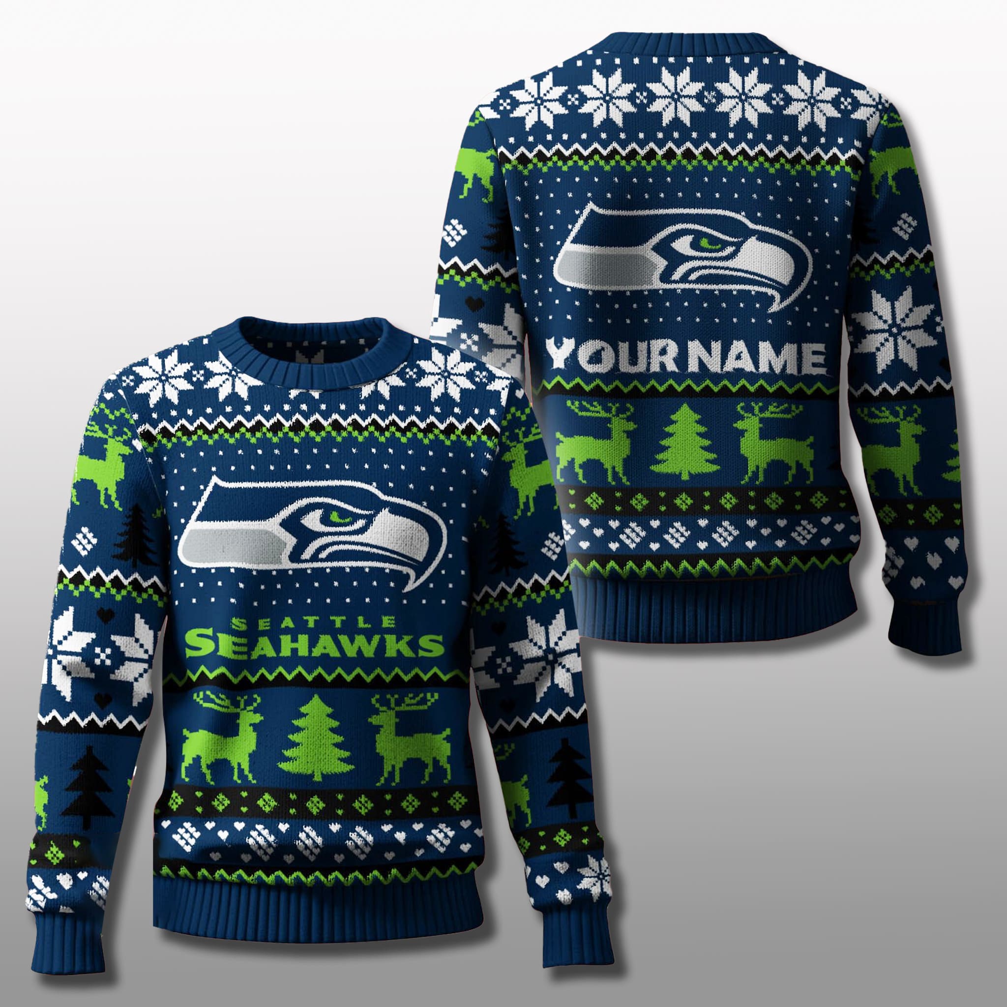 The Seahawks Custom Ugly Christmas Sweater 2025 is the perfect way to show pride and love for your favorite team during the year-end celebrations. Don’t miss out on this personalized Christmas sweater to warm hearts and bring laughter this holiday season. Shop now!