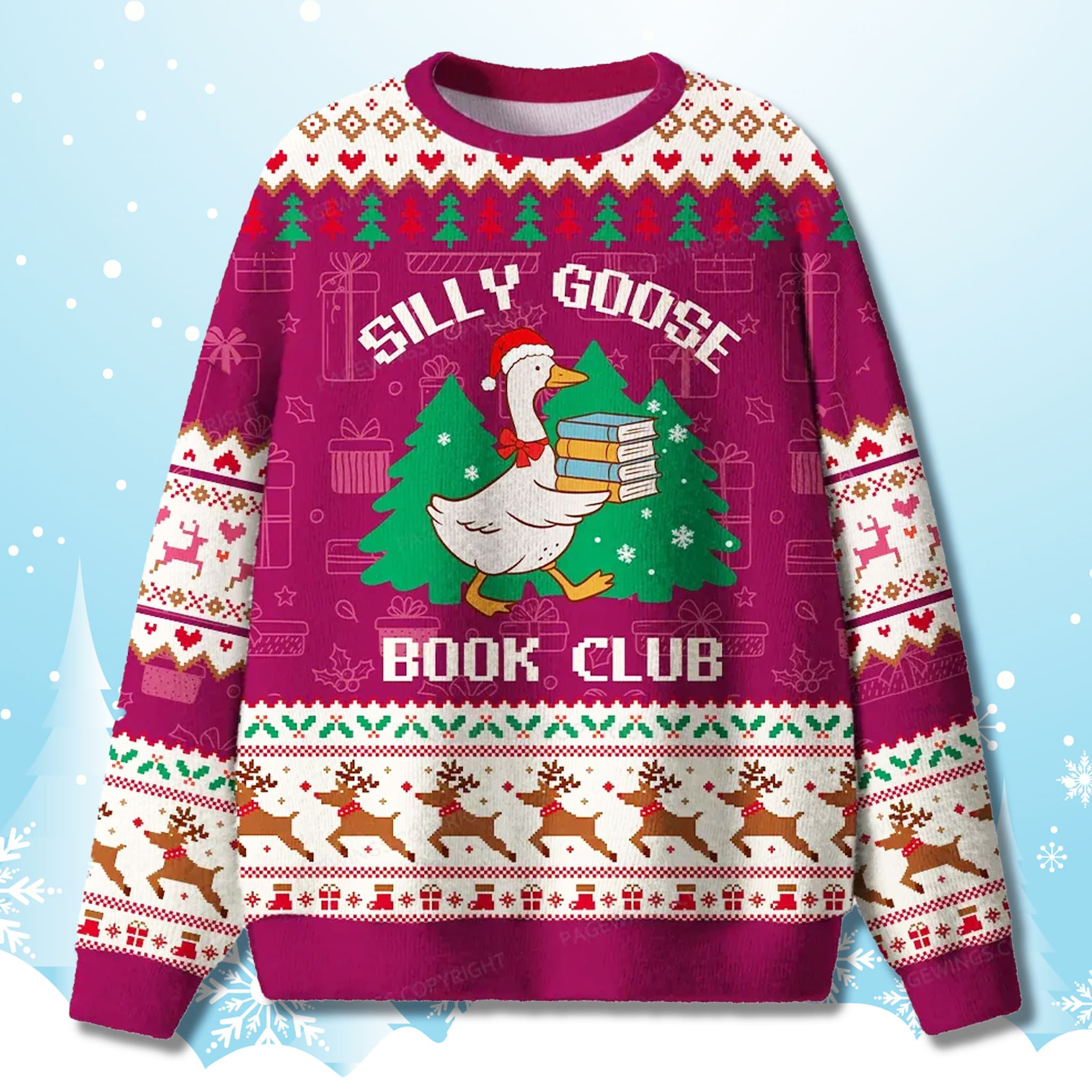 Join the Coziest Club This Christmas! This holiday, wear your love for books and your fun personality on your sleeve. It’s the perfect uniform for holiday reading sessions or your next festive get-together. Don’t be a silly goose- order your Silly Goose Book Club Ugly Christmas Sweater today and get cozy for Christmas!
