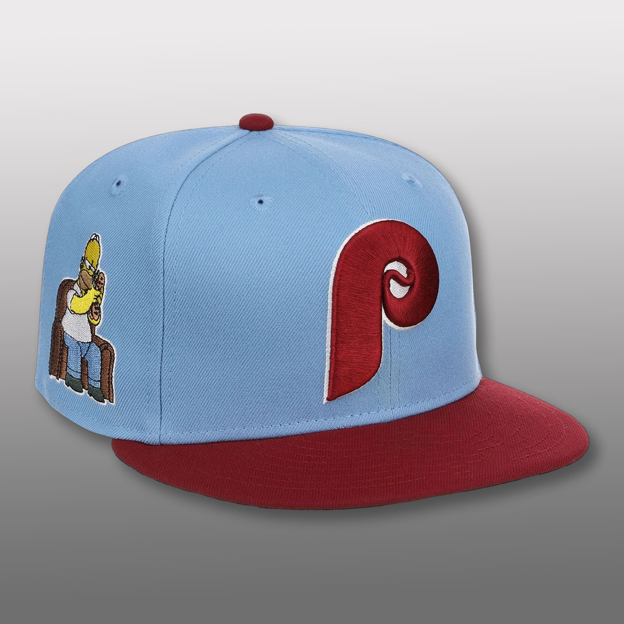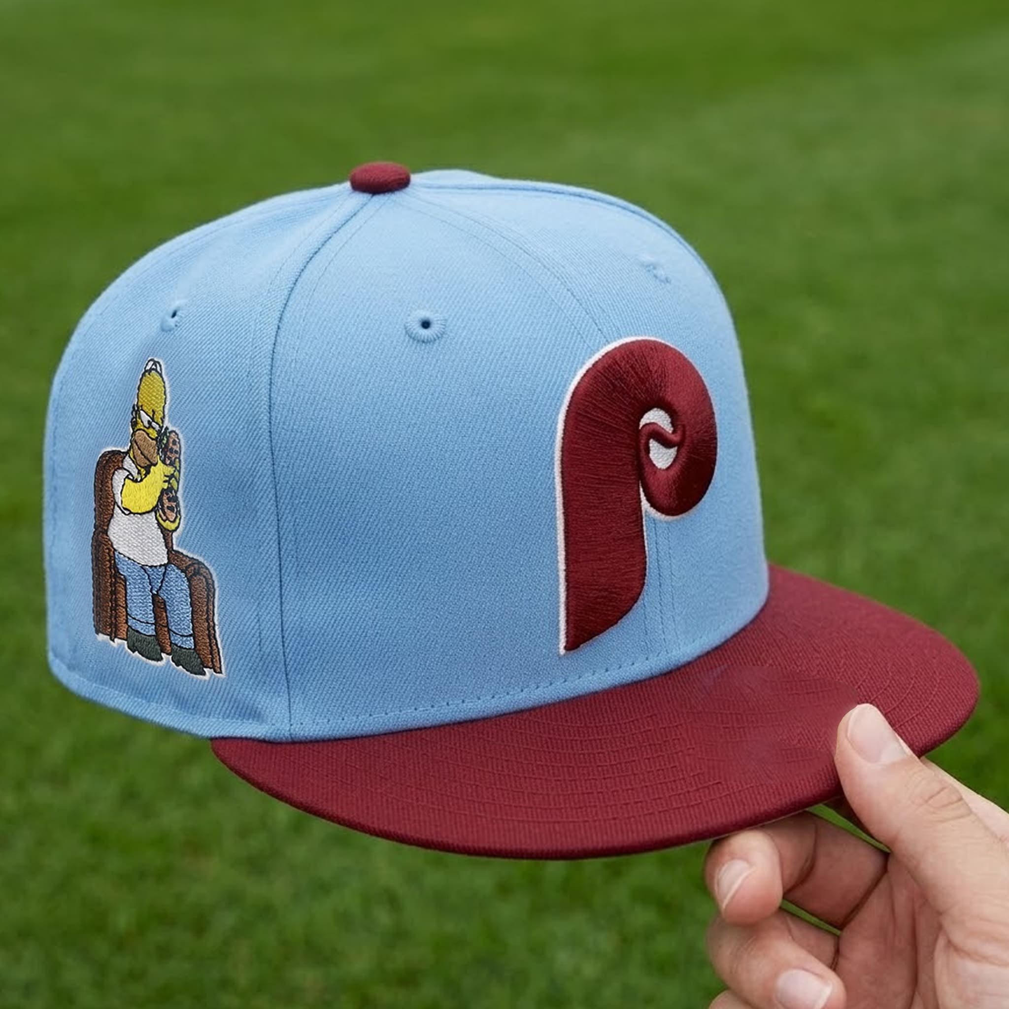 You’ve probably seen the iconic image of Homer Simpson sitting on the couch, donut in hand, from The Simpsons. The Simpsons Phillies Maroon Hat brings Homer from his Springfield sofa straight to Phillies territory with a laid-back and humorous vibe captured in this design.