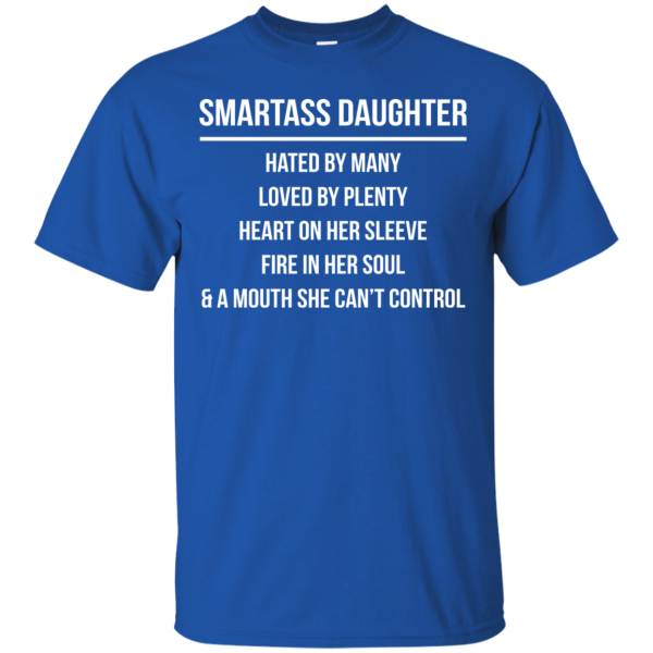 Smartass Daughter hated by many loved by plenty heart on her sleeve fire in her soul & a mouth she can’t control t-shirt, tank top, hoodie