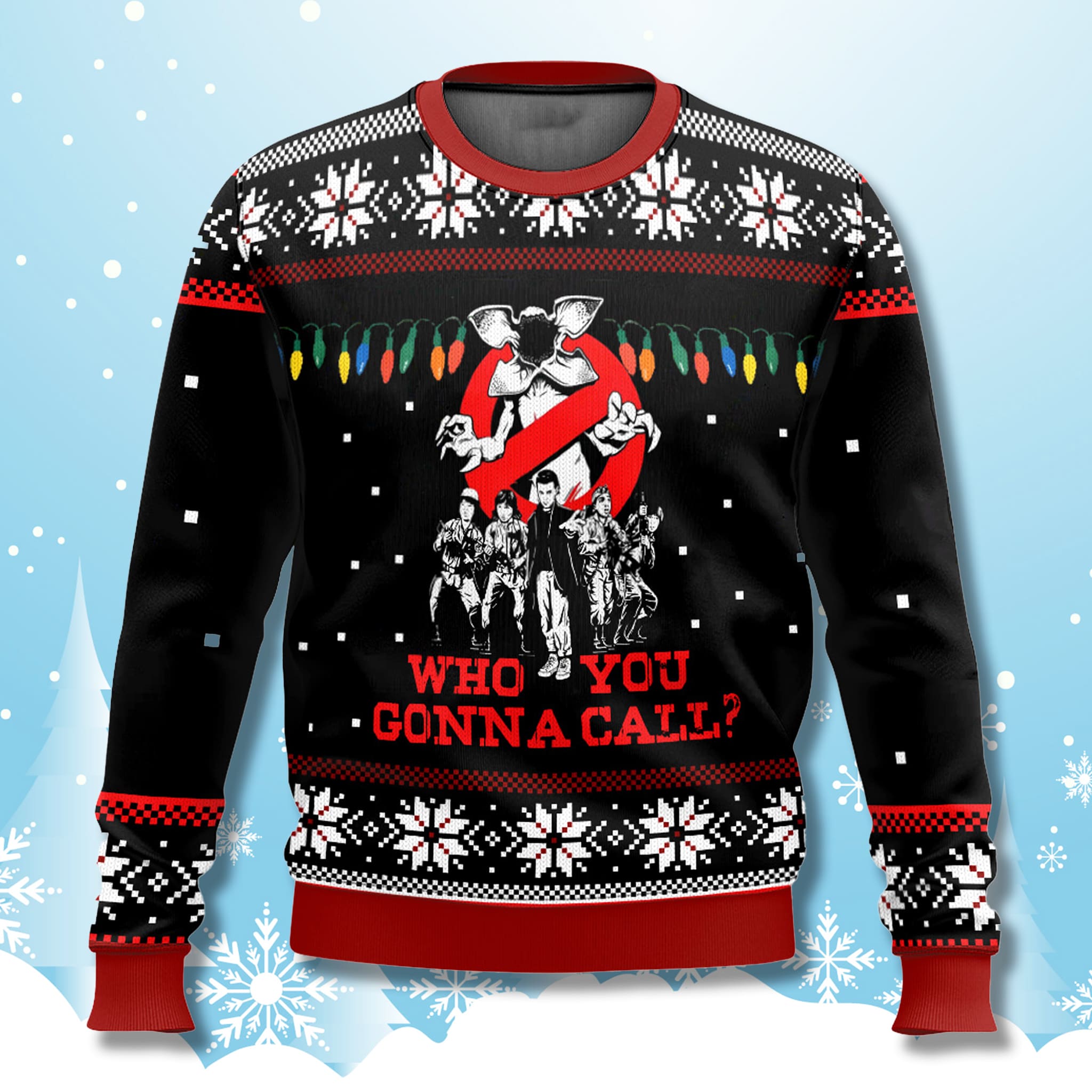 Prepare to bridge the gap between Hawkins, Indiana, and the streets of New York with the Stranger Things Who You Gonna Call Ugly Christmas Sweater! This epic holiday knit is the ultimate, combining the beloved kids of the Stranger Things cast with the iconic imagery and catchphrase of Ghostbusters. It’s the perfect statement piece for fans of 80s pop culture, supernatural thrillers.