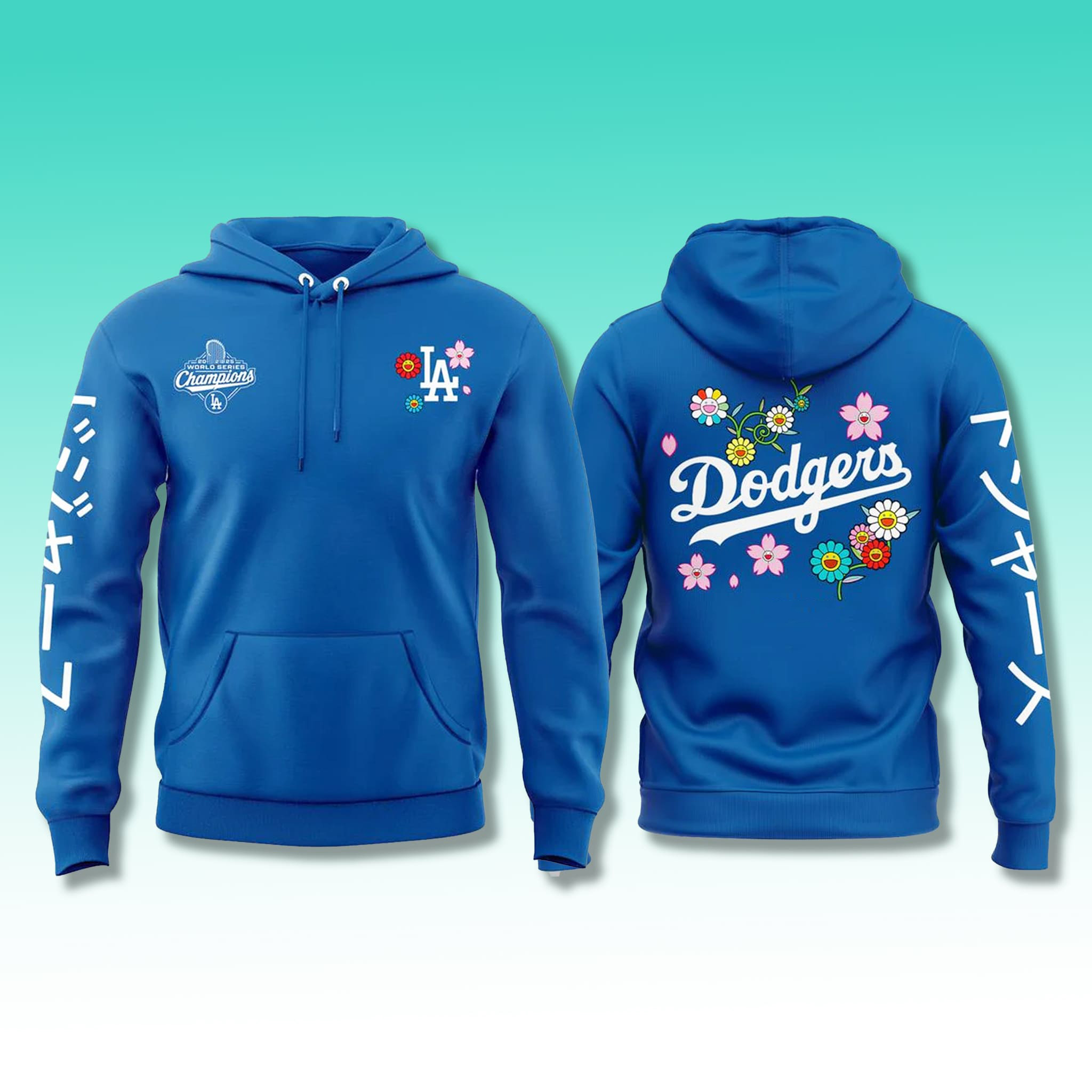 The Takashi Murakami Dodgers World Series 2025 Hoodie is a one-of-a-kind celebration piece that fuses the championship pride of the Los Angeles Dodgers with the iconic “Superflat” aesthetic of legendary Japanese artist Takashi Murakami.
