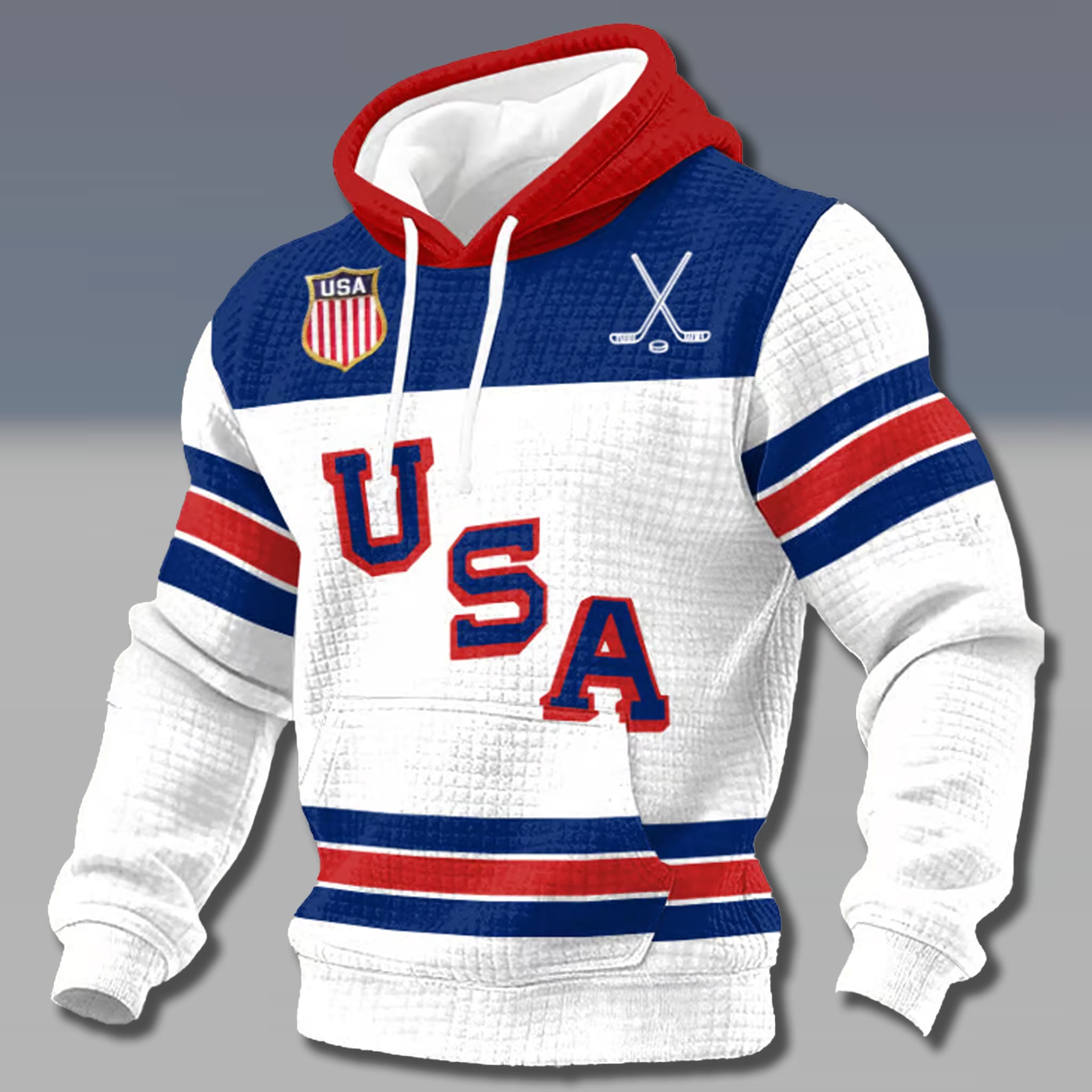 Team USA Hockey 2026 Waffle Hoodie is a warm symbol of Team USA’s journey at the 2026 Olympics, where American hockey aims for historic gold. Get this cozy hoodie now and help spread the unbreakable spirit on the ice!