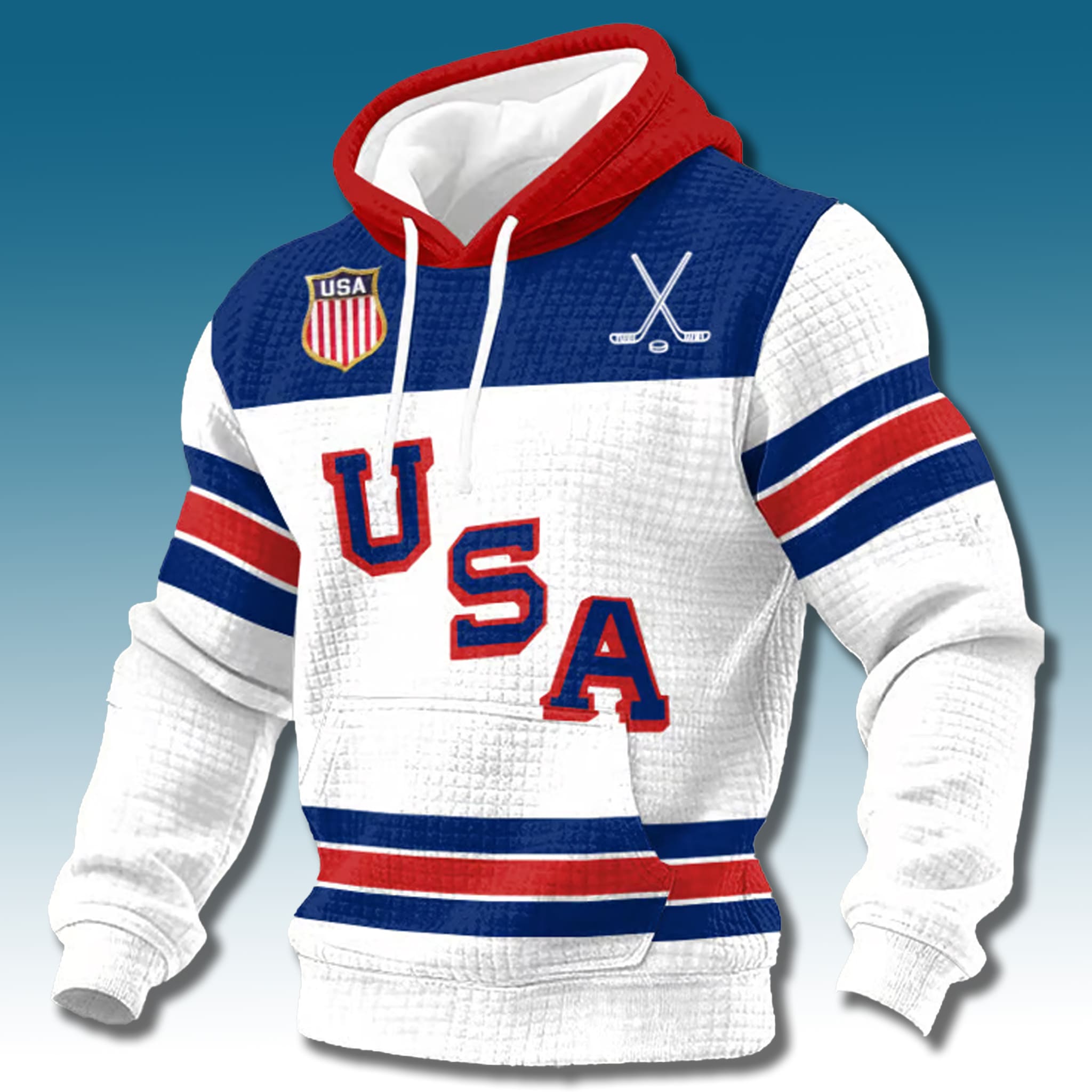 Team USA Hockey 2026 Olympic Waffle Hoodie – Warm Hoodie Cheering for Team USA at Milan-Cortina