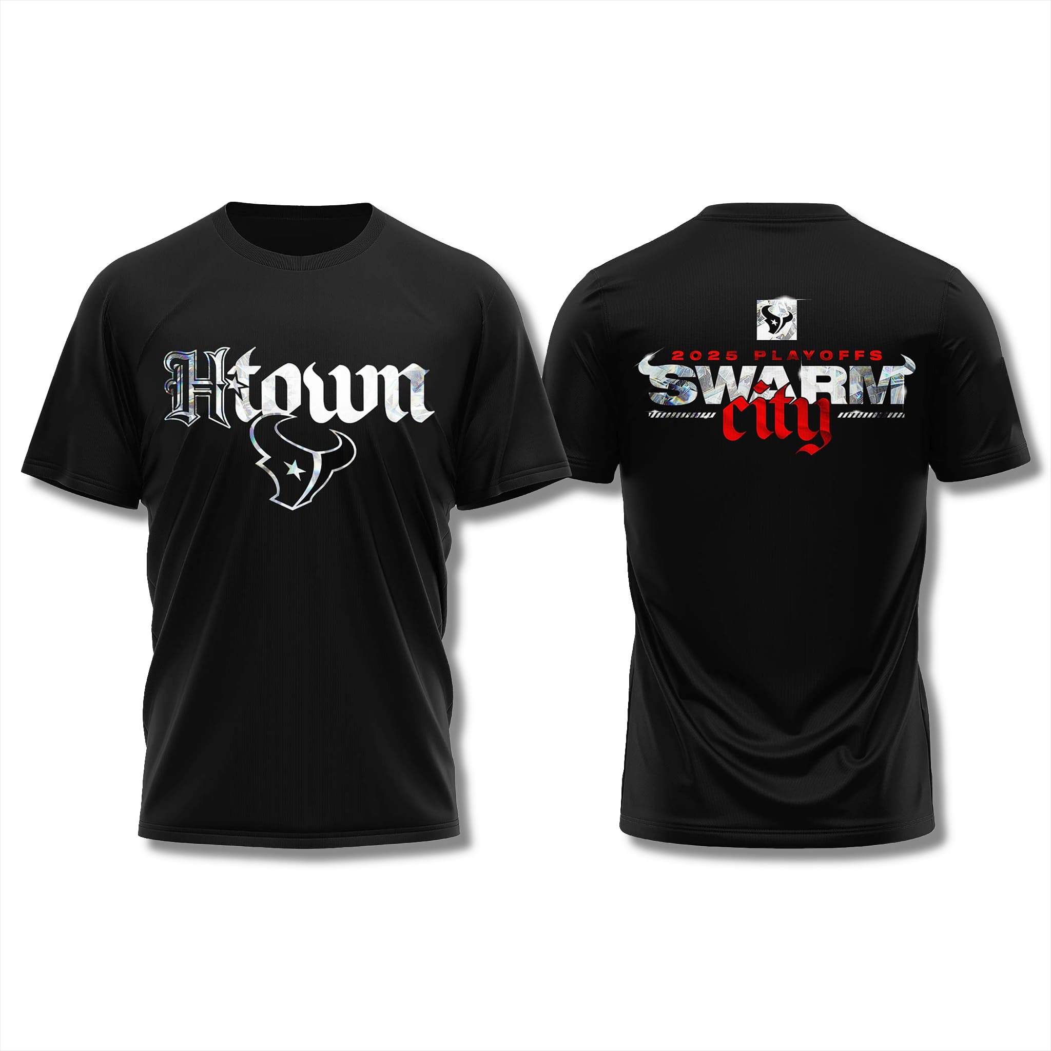 The Texans SWARM City 2025 Playoffs Hoodie is a warm and meaningful item for Houston Texans fans, honoring the slogan “SWARM City” – a new nickname that stood out after the dominant 30–6 win over the Pittsburgh Steelers in the Wild Card Round (January 12, 2026). “SWARM” stands for Special Work Ethic And Relentless Mindset, a philosophy introduced by head coach DeMeco Ryans to assert the team’s elite defensive strength.