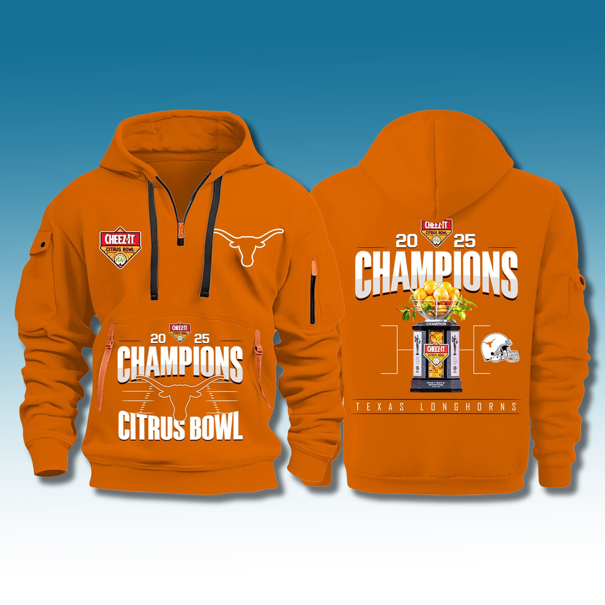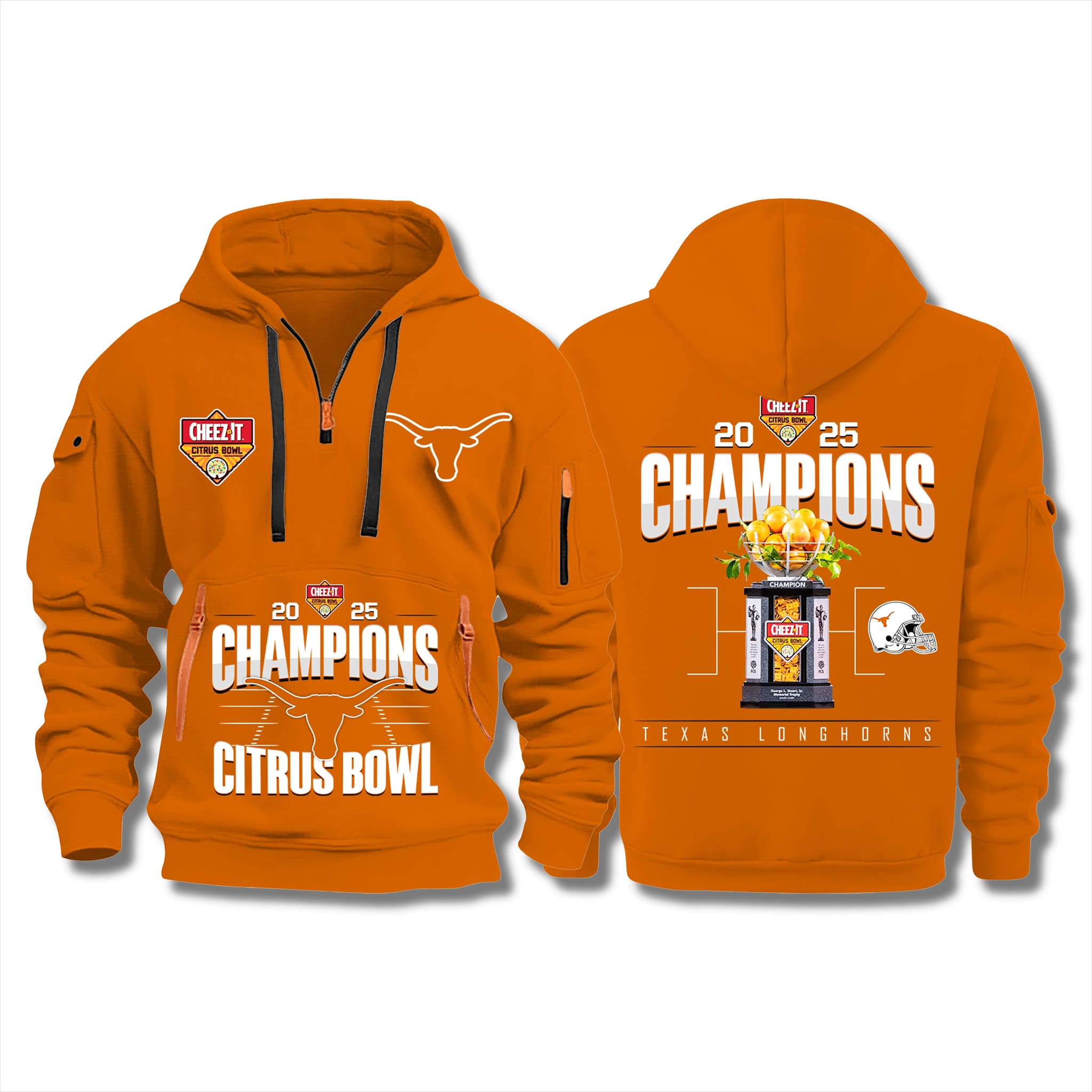 Texas Longhorns Citrus Bowl Champions Quarter Zip Hoodie 2025 – Cheesy Victory Hoodie from Orlando