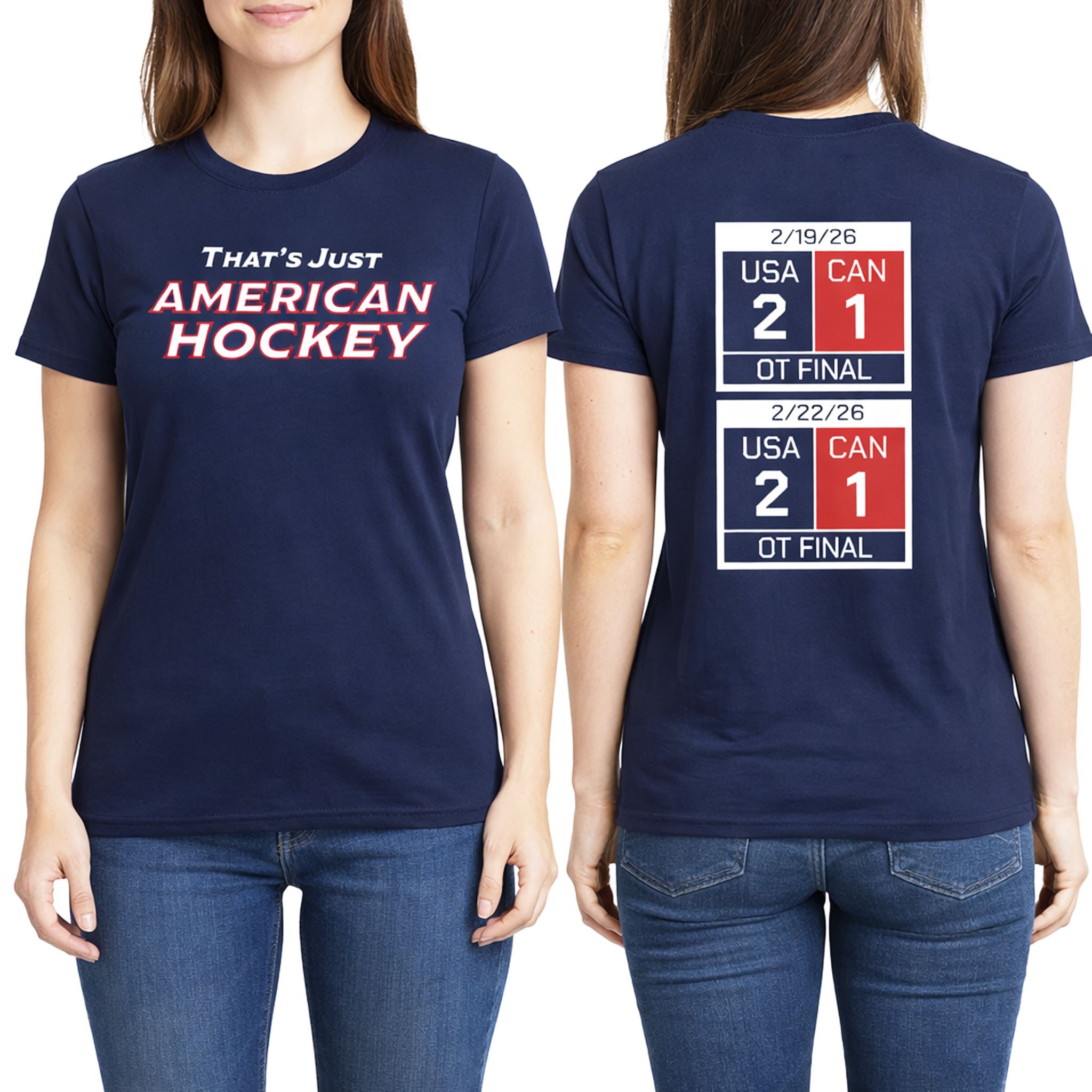 That’s Just American Hockey 2026 Gold Medal Shirt is a pride-filled fashion item commemorating the historic double gold of American hockey at Italia 2026 – the first time USA swept gold in both men’s and women’s hockey against rival Canada. The men’s team won 2-1 in overtime on 2/22/2026 thanks to the golden goal by Jack Hughes in extra time; the women’s team also won 2-1 OT on 2/19/2026 with the decisive goal by Megan Keller after Hilary Knight tied the game.
