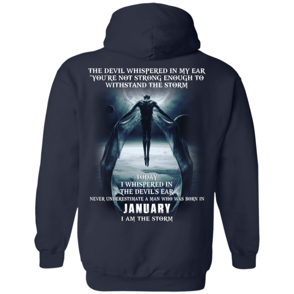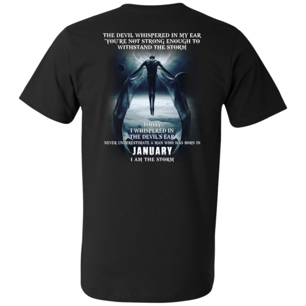 “The devil whispered in my ear “You’re not strong enough to withstand the storm.” Today I whispered in the devil’s ear ” never underestimate a man who was born in January t-shirt. I am the storm.” The Devil whispered in my ear, a Man born in January shirt, tank, hoodie available.
