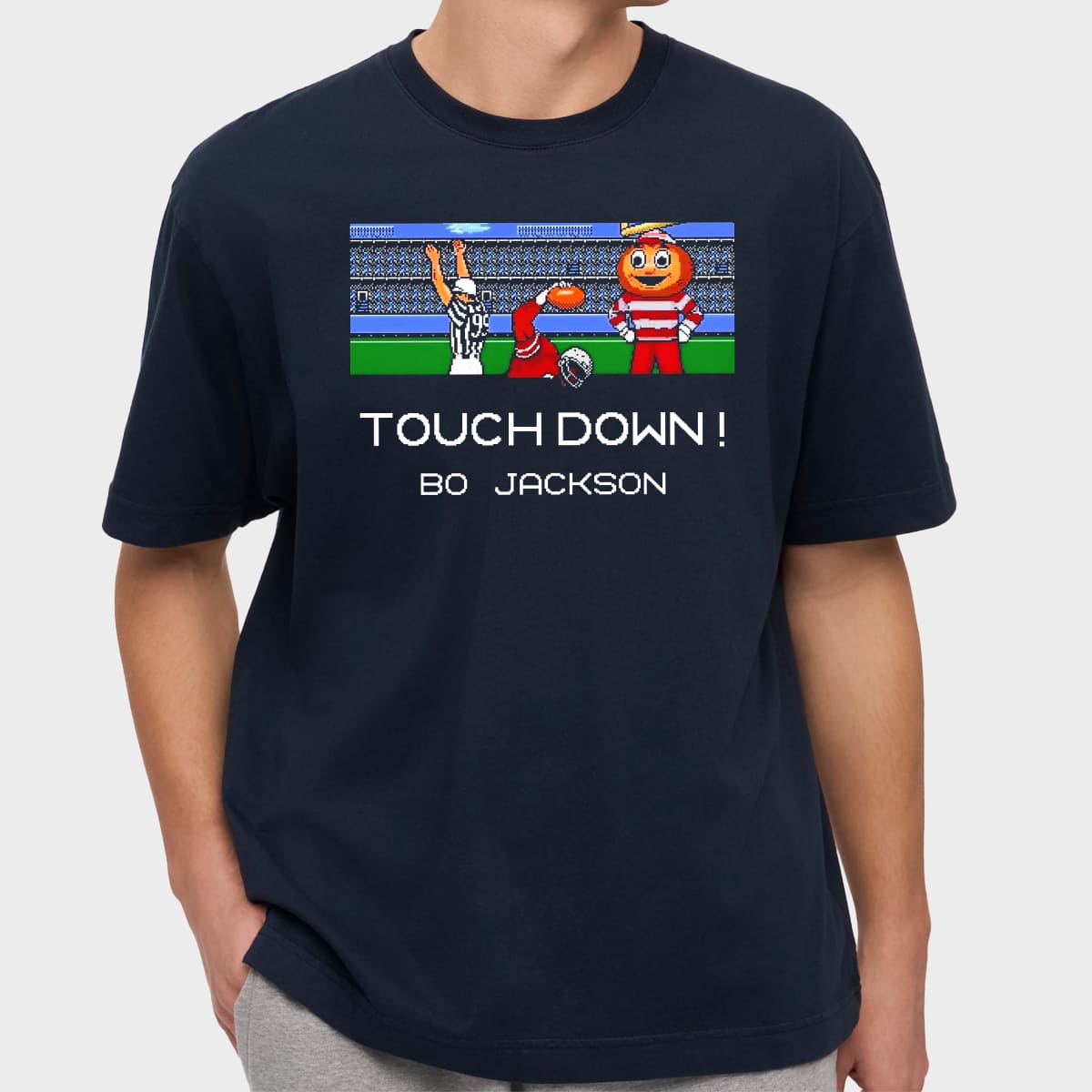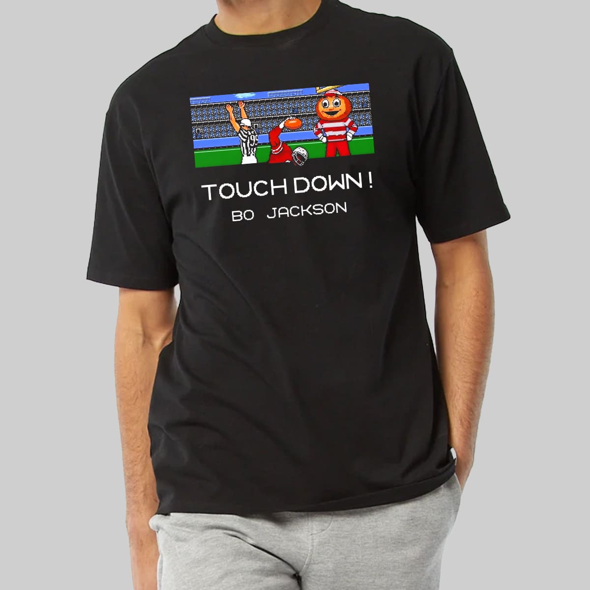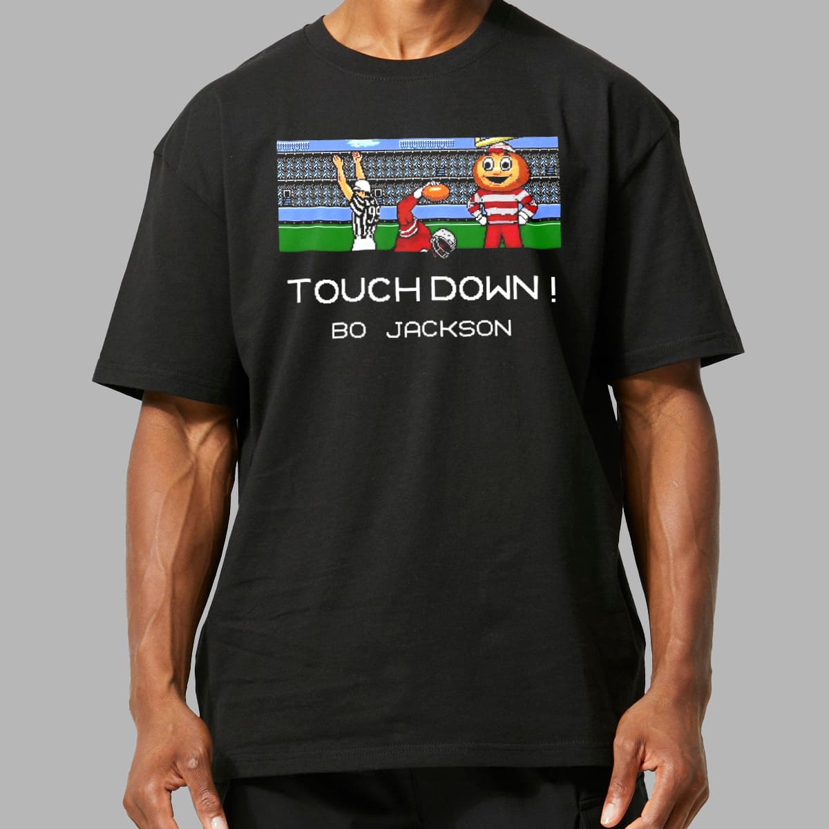 Capture the legendary moment! This exclusive Touch Down! Bo Jackson Shirt is the perfect blend of sports history and gaming nostalgia. If you know, you know! Buy your Bo Jackson Retro T-Shirt today and bring back the memory of running the entire field!
