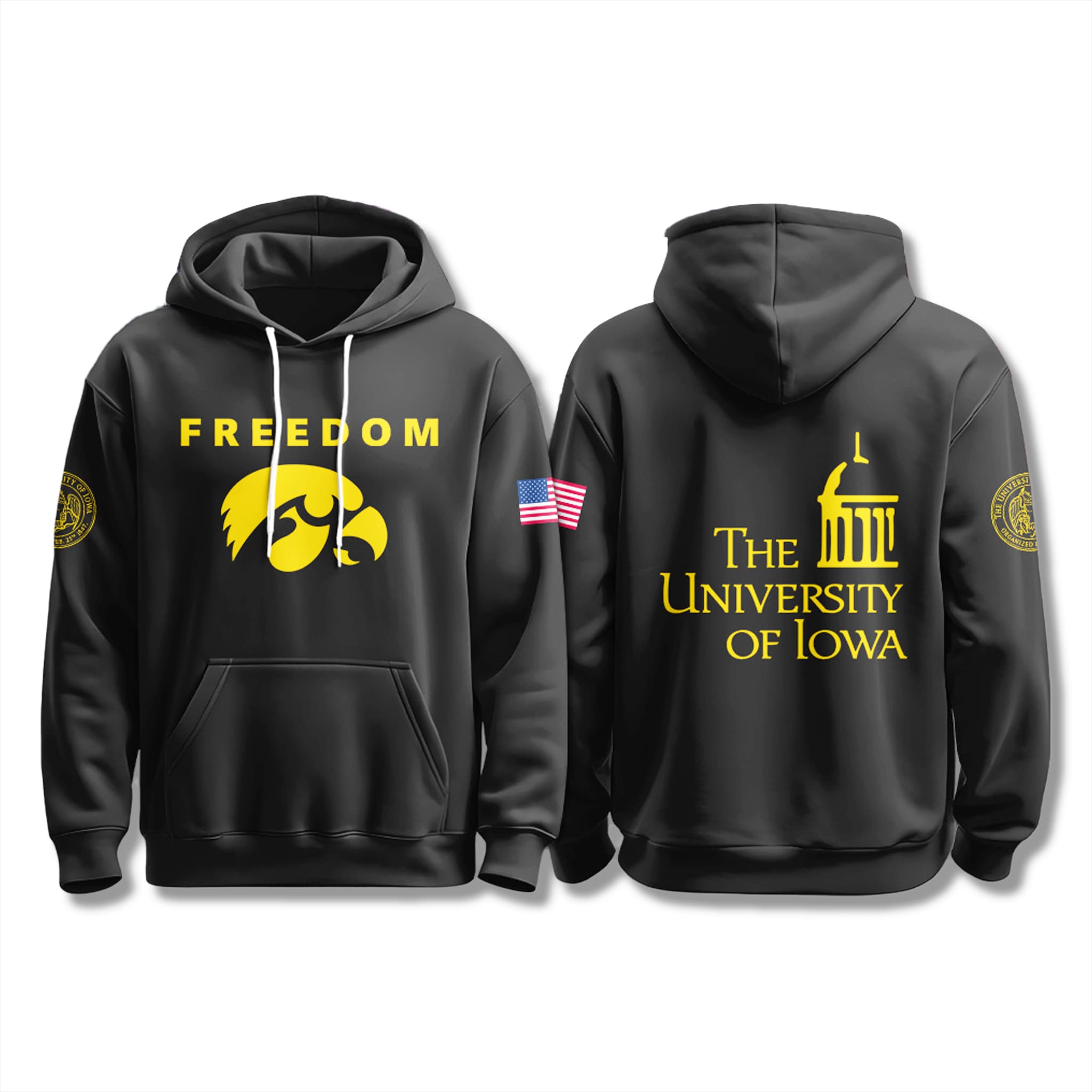 Fully express your pride. The University Of Iowa Freedom Hoodie is the perfect way to affirm who you are – a Freedom-loving “Hawkeye.” Go Hawks!