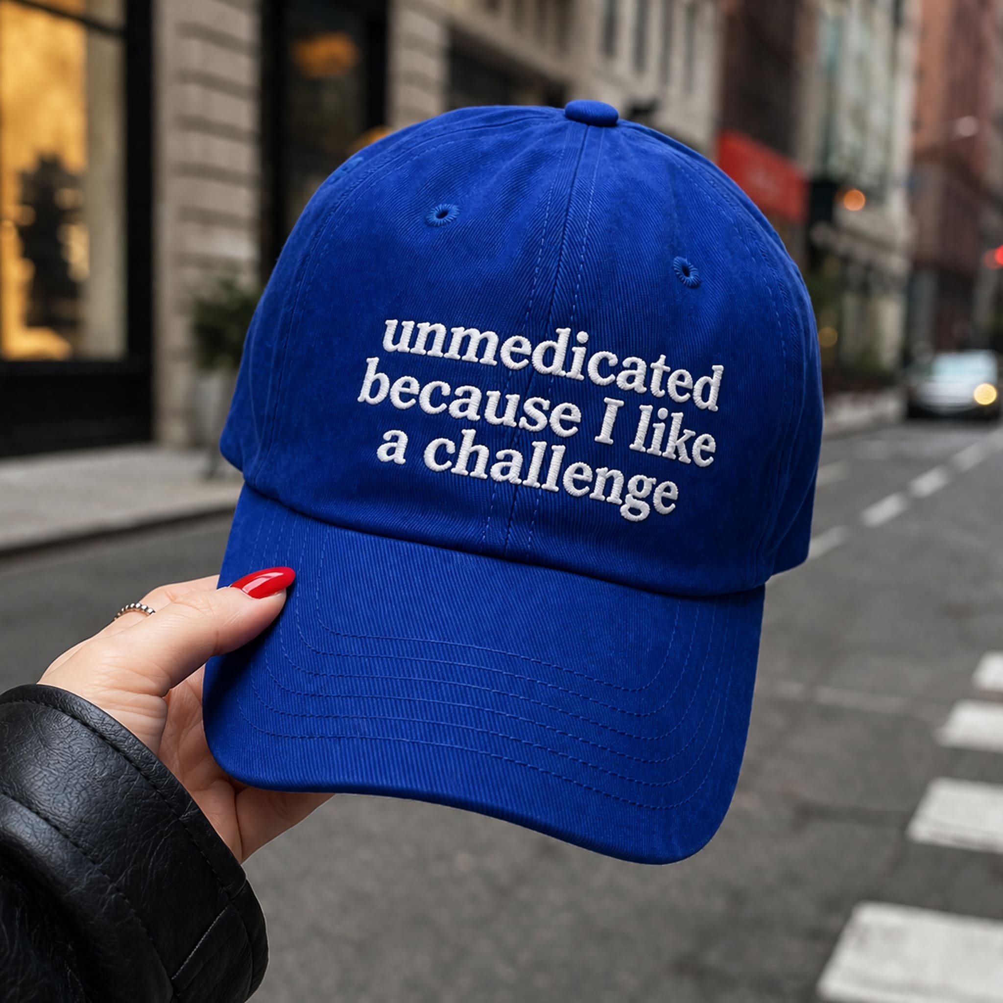 Get your Unmedicated Because I Like A Challenge Hat today and carry a fun, confident, and uplifting vibe wherever you go. More than just a fashion accessory, it’s a lighthearted way to express humor, self-awareness, and a strong, fearless lifestyle.