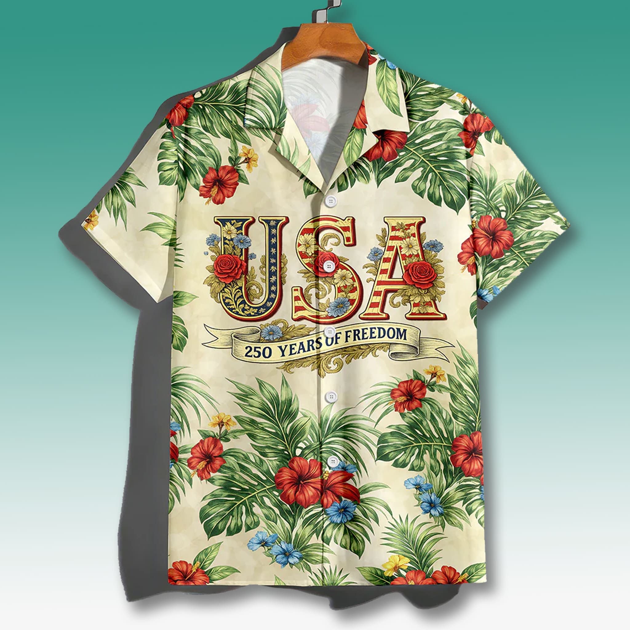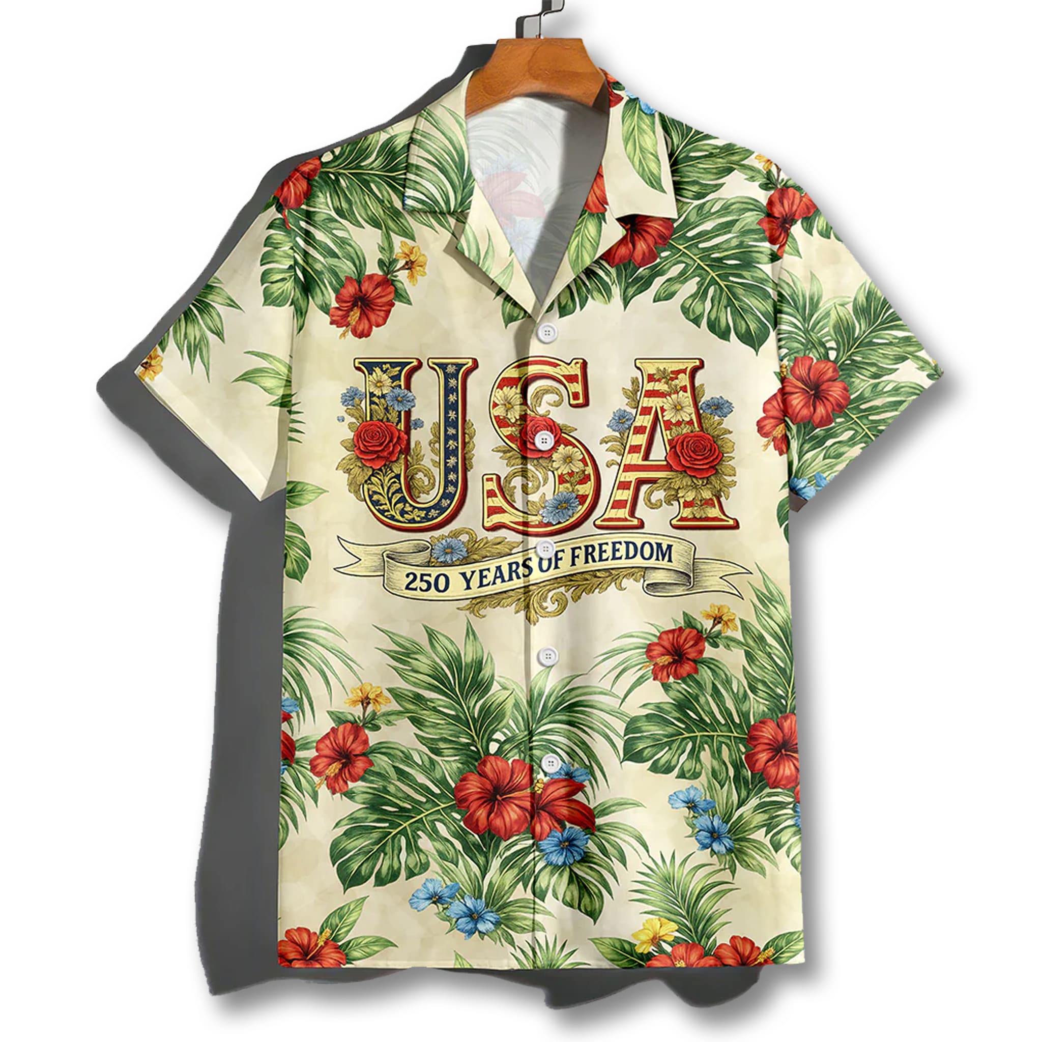 USA 250 Years of Freedom Tropical Hawaiian Shirt USA 250 Years of Freedom Tropical Hawaiian Shirt
