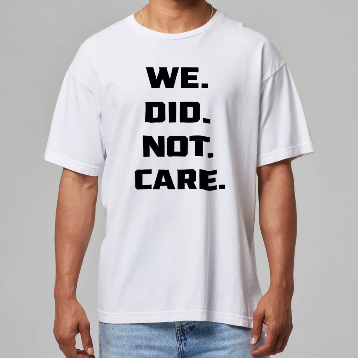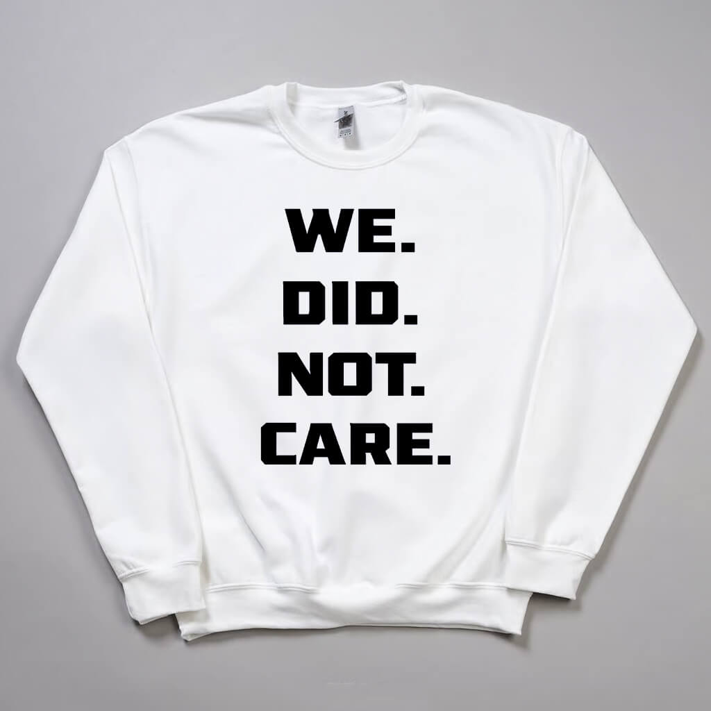 Inspired by a minimalist yet visually striking typography style, the We Did Not Care Shirt Seahawks uses a neutral white base to highlight the decisive black message, creating a sharp, steady, and uncompromising rhythm.