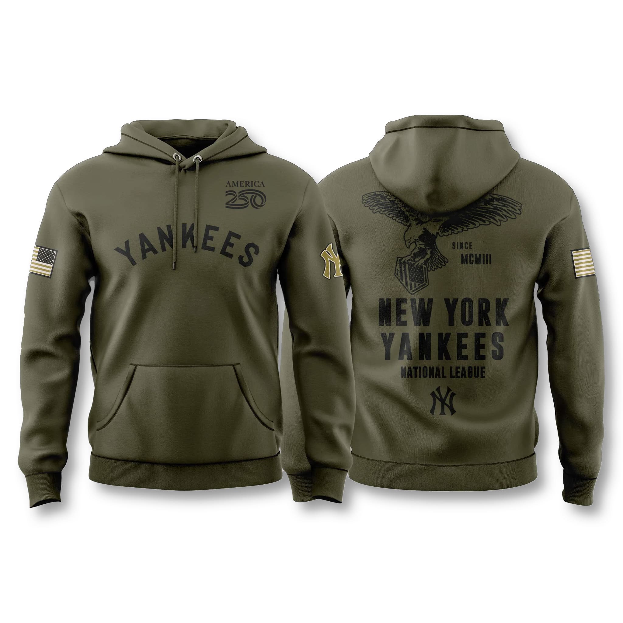 The Yankees Armed Forces Day 2026 Hoodie is a special hoodie edition released for Armed Forces Day 2026 by the New York Yankees team. This design is not only for Yankees fans but also a way to honor American soldiers who are serving, while celebrating America 250 – the 250th anniversary of the Independence of the United States (1776-2026). This item represents the perfect combination of baseball passion and patriotism, allowing you to proudly show your personality whenever you wear it.